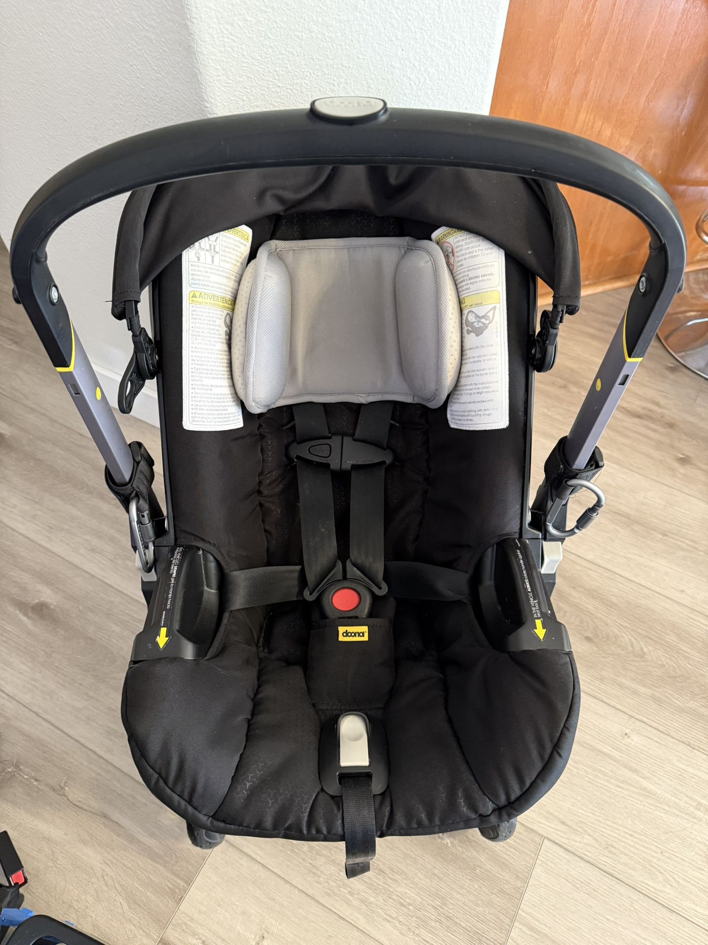Doona infant car seat/stroller we used for about a year. Daughter grew too tall for it. Very useful and convenient. With the 2 bases, we installed a base in each of our cars and the Doona just snaps into place. We did not have to carry a separate stroller. Awesome for travel also. You don’t need the base to strap it into an Uber or rental car. Go from the car to the park or the store in seconds with the super-functional Doona™ All-in-One Infant Car Seat/Stroller. It’s the only car seat in the world with integrated wheels so it easily unfolds and converts into a stroller. Featuring a safe, ergonomic design, it’s constructed with three-layer side impact protection so your little one stays secure. DETAILS THAT MATTER Doona™ All-in-One Infant Car Seat/Stroller is the world’s first infant car seat with a complete and fully integrated mobility solution. Car seat transforms into stroller without having to purchase extra parts and allows for more compact storage and better mobility. Adjustable handle provides unique anti-rebound protection. Double walls provide higher side-impact protection