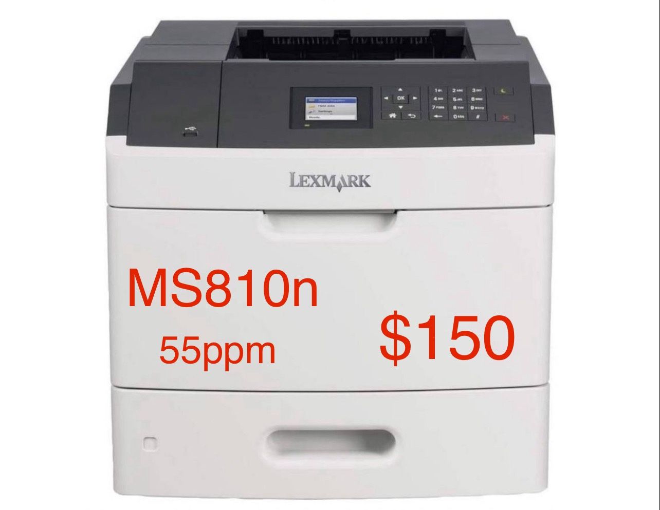 Lexmark MS810n Monochrome Laser With Toner and Imaging Units and Power Cords 55PPM