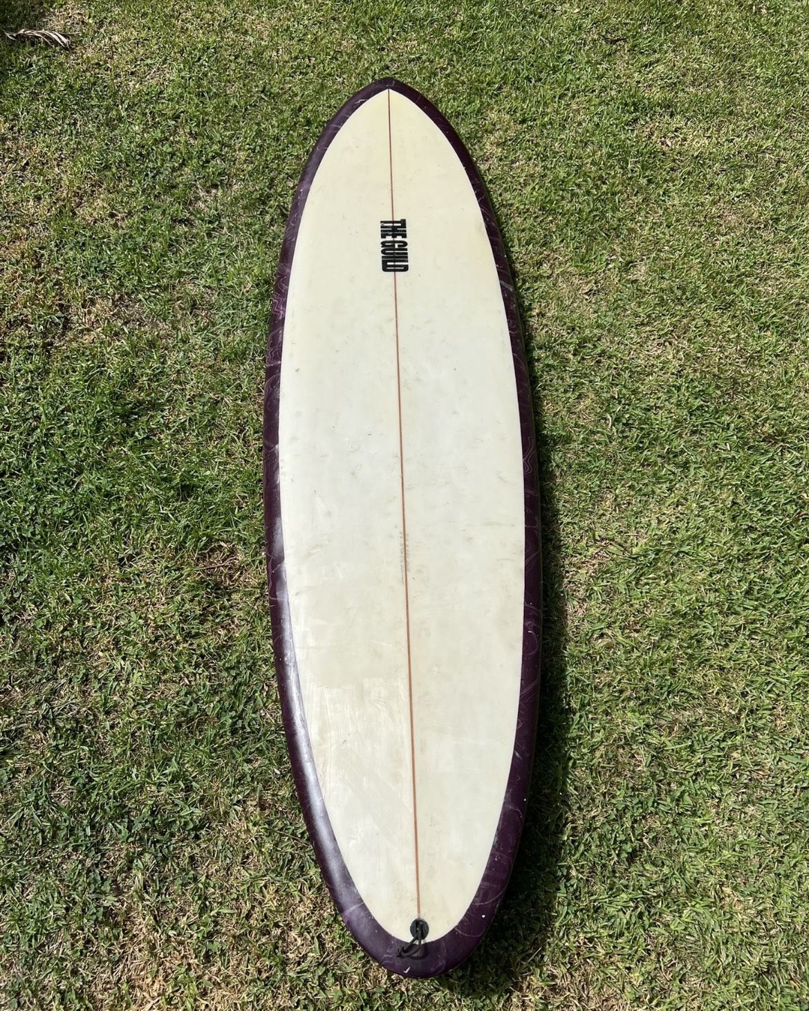 6'2 × 20 3/4 x 21/2 thumb tail egg quad with futures Stretch quad fins. A few solar rez ding fixes but in good condition overall. Shaped by waterman's guild and was a custom personal board from one of the shapers. It's a combo of a few models they make. Super fun all around board. Plenty of foam to grovel or get in to waves early when it gets a little bigger, rails hold for fun turns, and quad setup to stay fast and make it across the flat sections