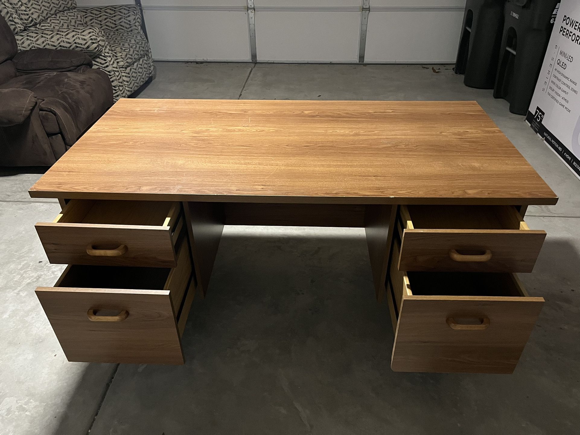 Classic executive‑style desk with lots of storage and in good shape. Solid and heavy, not flimsy like IKEA‑style flat‑pack desks. *** Dimensions: Height 29 in, Width 30 in, Length 60 in. *** Easy ground‑level pickup from garage. Cash, Venmo, or Zelle accepted.