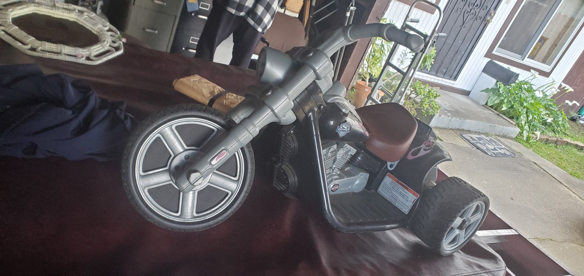 Selling a kid motorcycle Harley Davidson motorcycle. It comes with battery and charger . Runs good . Drives forward and reverse.