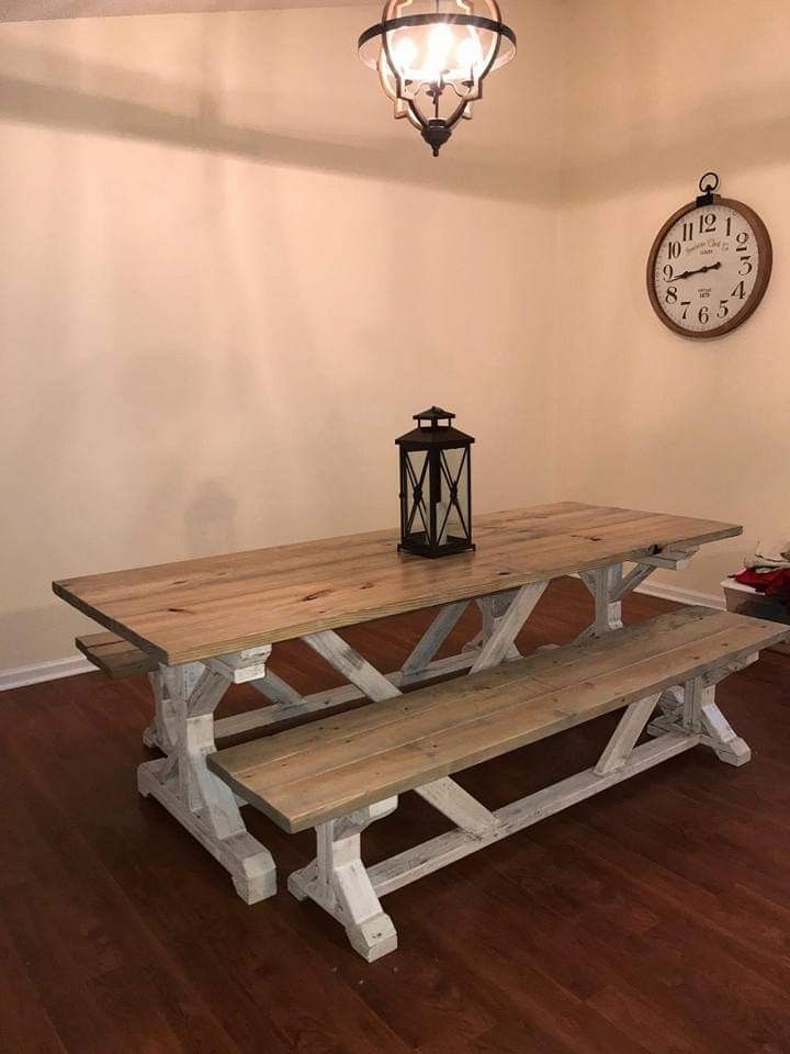 Built To Order Farmhouse tables and 2 benches are 500(up to 8 foot long). Stain and colors are whatever you desire. Can build them up to 12 feet long. Also build any other furnitureyou may need. Tops are sealed with polyurethane.