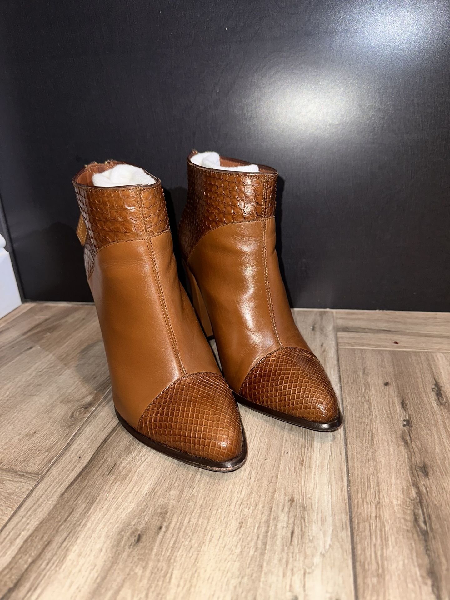 These boots are brand new only wore once. They are real leather. Size 7 women