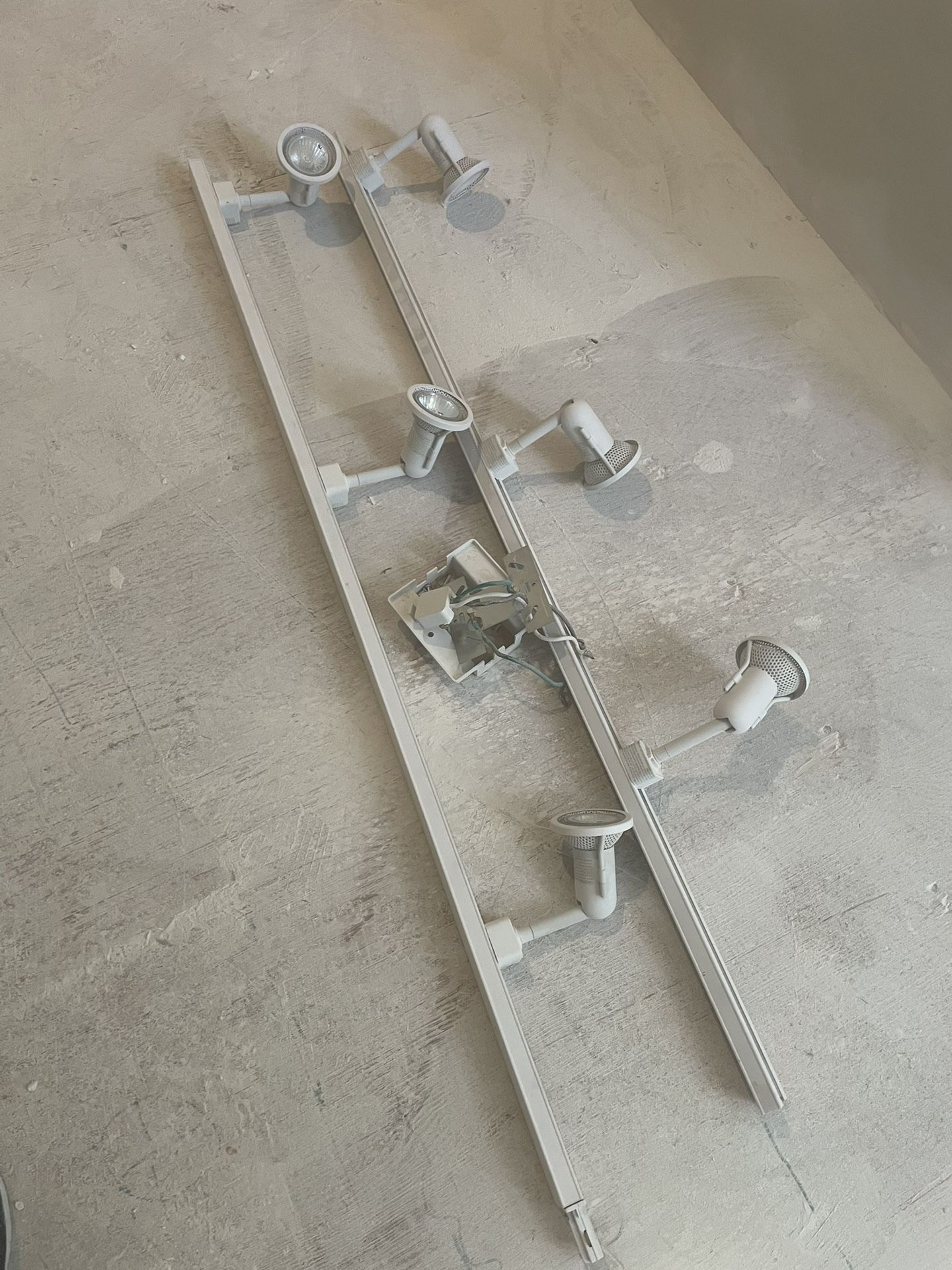 Halogen Track Lighting. 2 pieces. Each piece is 44” long. Includes 6 lights connectors and junction plate.