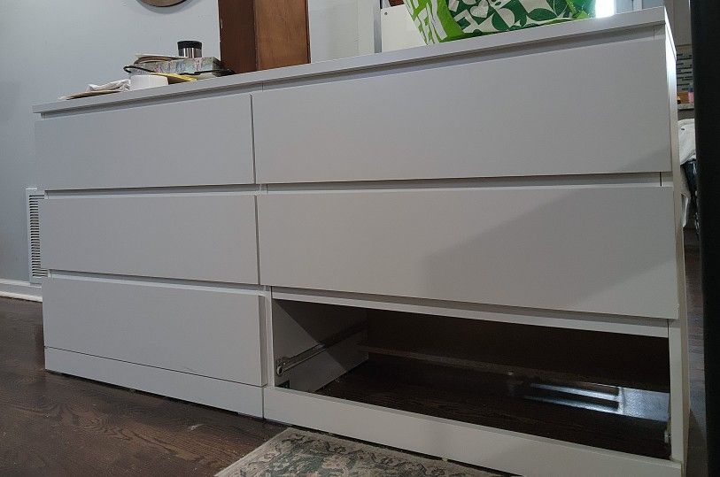 Large white dresser. 5 working drawers, One drawer broken but can still be used.