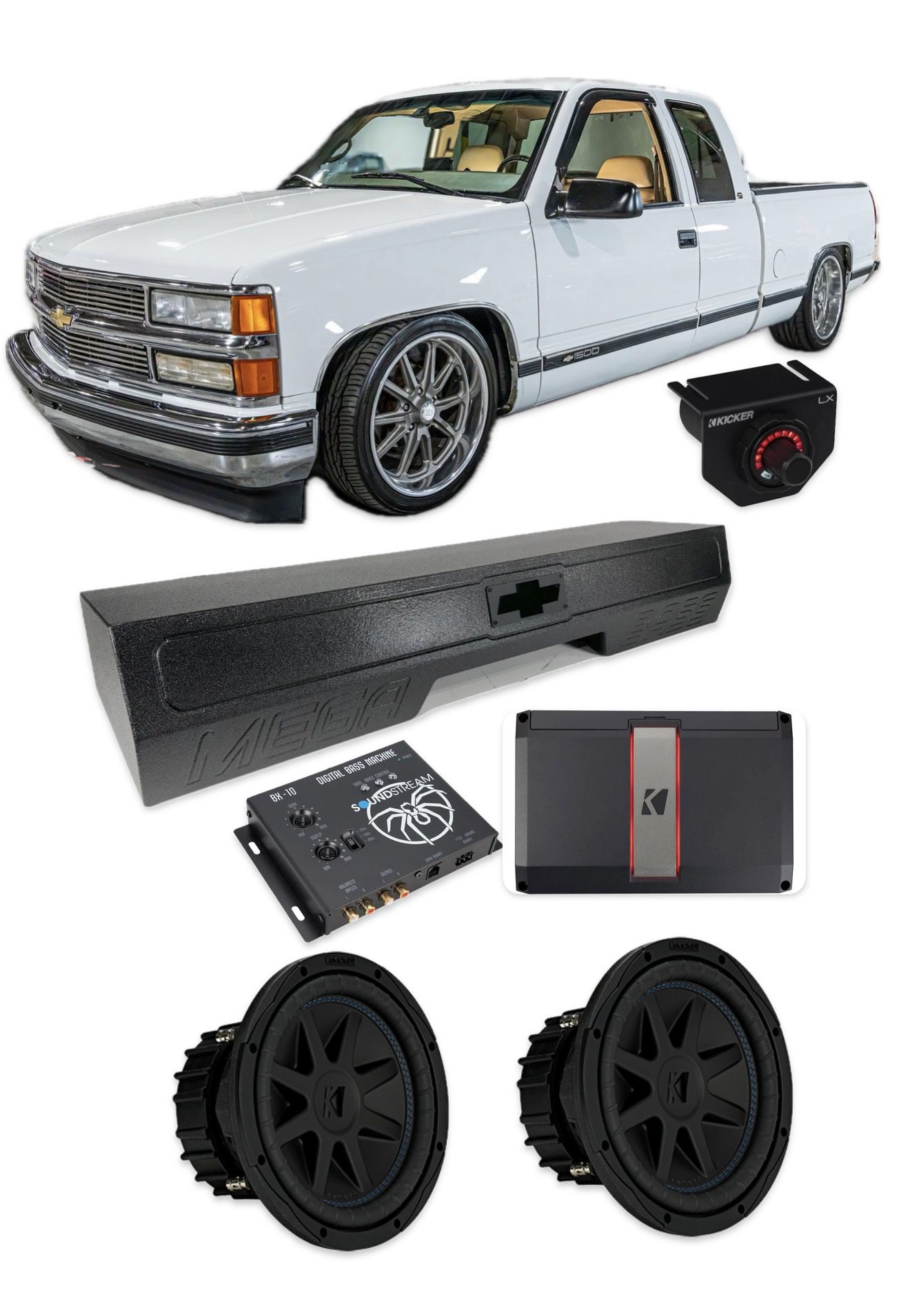 $1600 Firm New Installed Fit CHEVY SILVERADO OR GMC SIERRA EXTENDED CAB ONLY FROM 1988 to 1998 OBS STYLE CUSTOM BOX 2 kicker CVX 10” subwoofers 2400 watts 1200 rms Kicker lx series amplifier Bass epicenter Amp kit wires Installed Keywords alpine kenwood kicker pioneer Rockford Memphis mtx jl audio hifonics sundown audio skar audio ds18