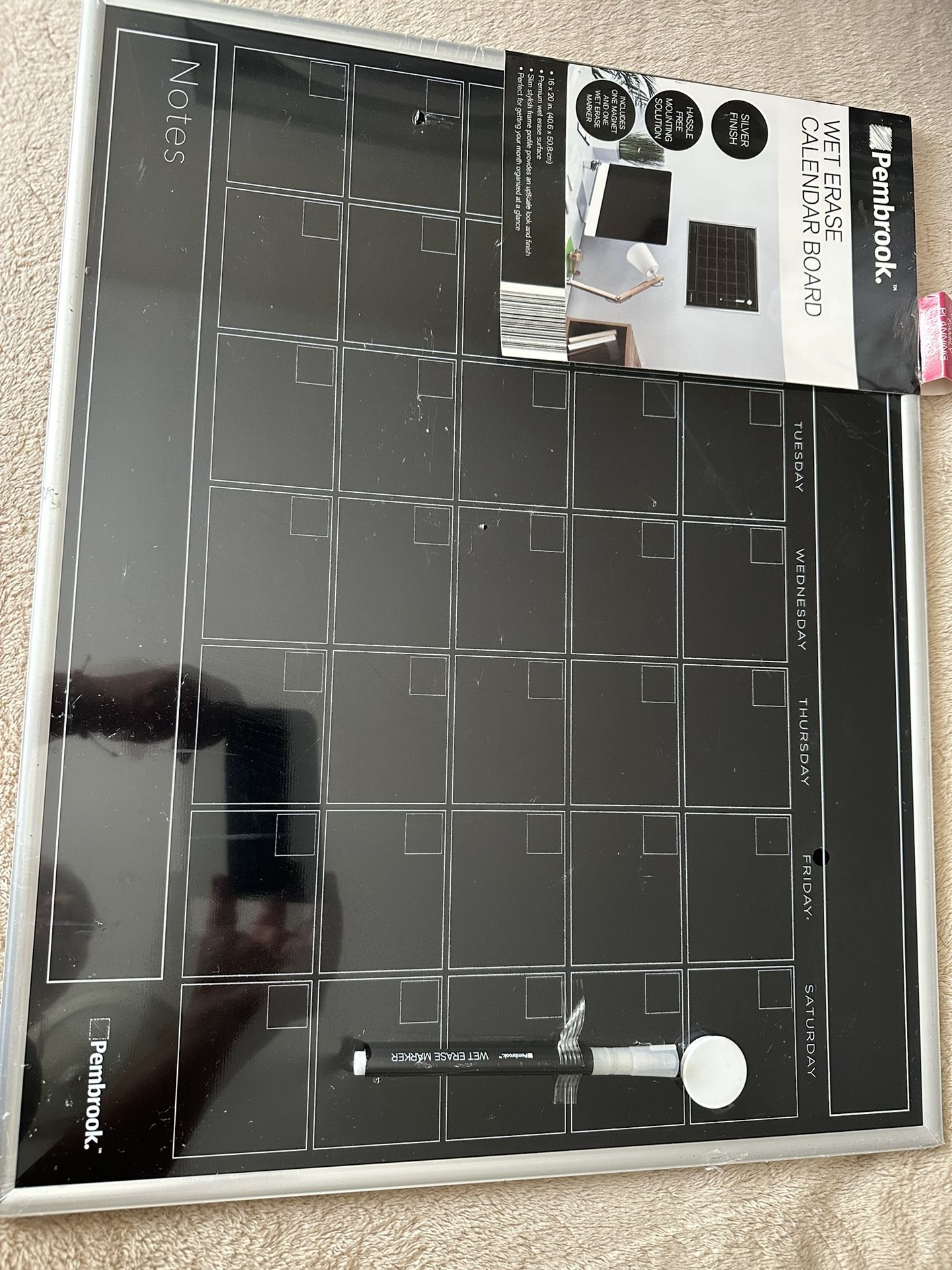 Magnetic Calendar Board, 20"x16", Whitewashed Wood Style Frame, includes Pencil and Magnet