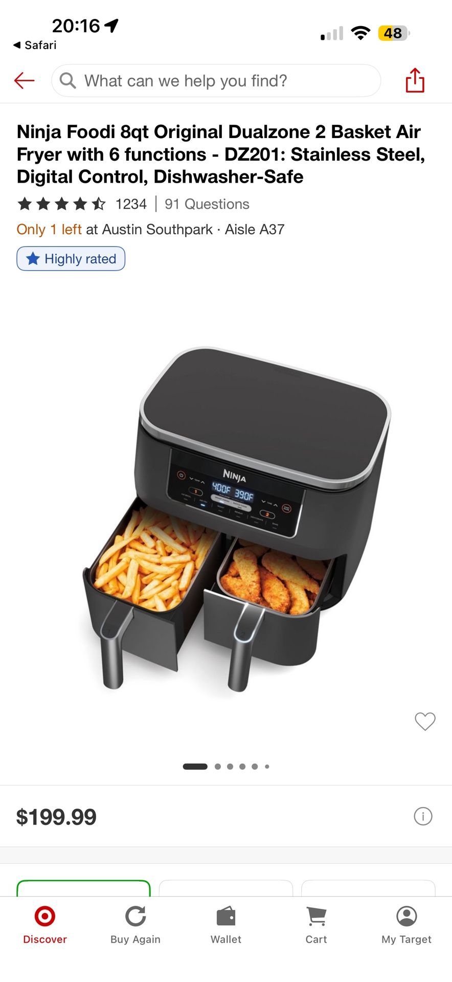 Selling my Ninja Foodi DualZone 8QT Air Fryer in excellent condition. ✔️ Less than 1 year old ✔️ Works perfectly – no issues at all ✔️ Clean and well maintained ✔️ Only selling because I upgraded This is the dual basket model, so you can cook two different foods at the same time with separate temps and timers. Super convenient for daily cooking. Features: • 8QT capacity (great for families) • DualZone Technology (cook 2 foods at once) • 6 cooking functions (Air Fry, Roast, Reheat, etc.) • Dishwasher-safe baskets • Stainless steel finish 💯 Saves time and replaces your oven for most meals. Retail price is $200+ after tax, asking $140 OBO 📍 Pickup in South Austin 💵 Cash/Zelle preferred
