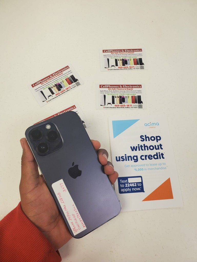 Pre Owned Apply online or in store (ask for online link) 1 Year Manufactures Warranty Factory Unlocked Excellent Working Condition Free Temp Glass or Clear Case on All iPhones Lifetime Blacklisted and IMEI Warranty on iPhones, Samsung, IPad's and Tablet's. No iCloud or Google Locked We have Limited Stock of PlayStation PS5, Xbox Series X & Series S, Nintendo Switch Mario Kart/Fortnite/Animal Crossing Bundles and Oculus Quset 2. All Accessories sold separately at additional cost. ***We Finance $0 to $50 Down Payment - No Credit Needed*** BAD OR NO CREDIT ALL ACCEPTED Easy-payments Decisions in minutes Take item home right away! Flexible payment options NO CREDIT NEEDED Three different options available Option 1: $0 down %0 interest for 6-12 months and low monthly payments Option 2: $0-$50 dow with %0 interest for 100 days Option 3: Low down payment with flexible payment options 90 days to 12 months payment option. Only $0-$50 is initial or down payment to take device home with you. Full price is based on which finance company approves you and depending on how long it will take you to pay back. ⚠️Requirements for in-store application⚠️ ✅ ID / Passport/ Mexican ID or Passport ✅ SSN or ITIN ✅ Bank account info ✅ Debit or credit card ⬇️⬇️⬇️⬇️⬇️⬇️⬇️⬇️⬇️ CELLPHONES & ELECTRONICS 1234 S Buckner Blvd, Suite 150, Dallas TX 75217 (We are behind PLS Check Cashing Building) 🕐 Mon-Sat 10:00am - 8:00pm 🕐 Sunday (By Appointment)