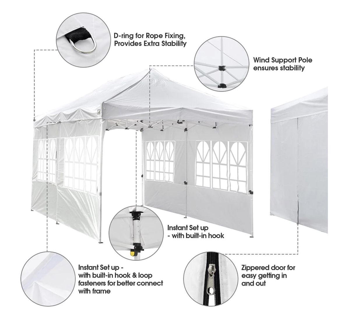 10x20' Heavy Duty Enclosed Pop Up Canopy Folding with 4 Sidewalls for Outdoor Event Vendor Farmer Flea Market Tent