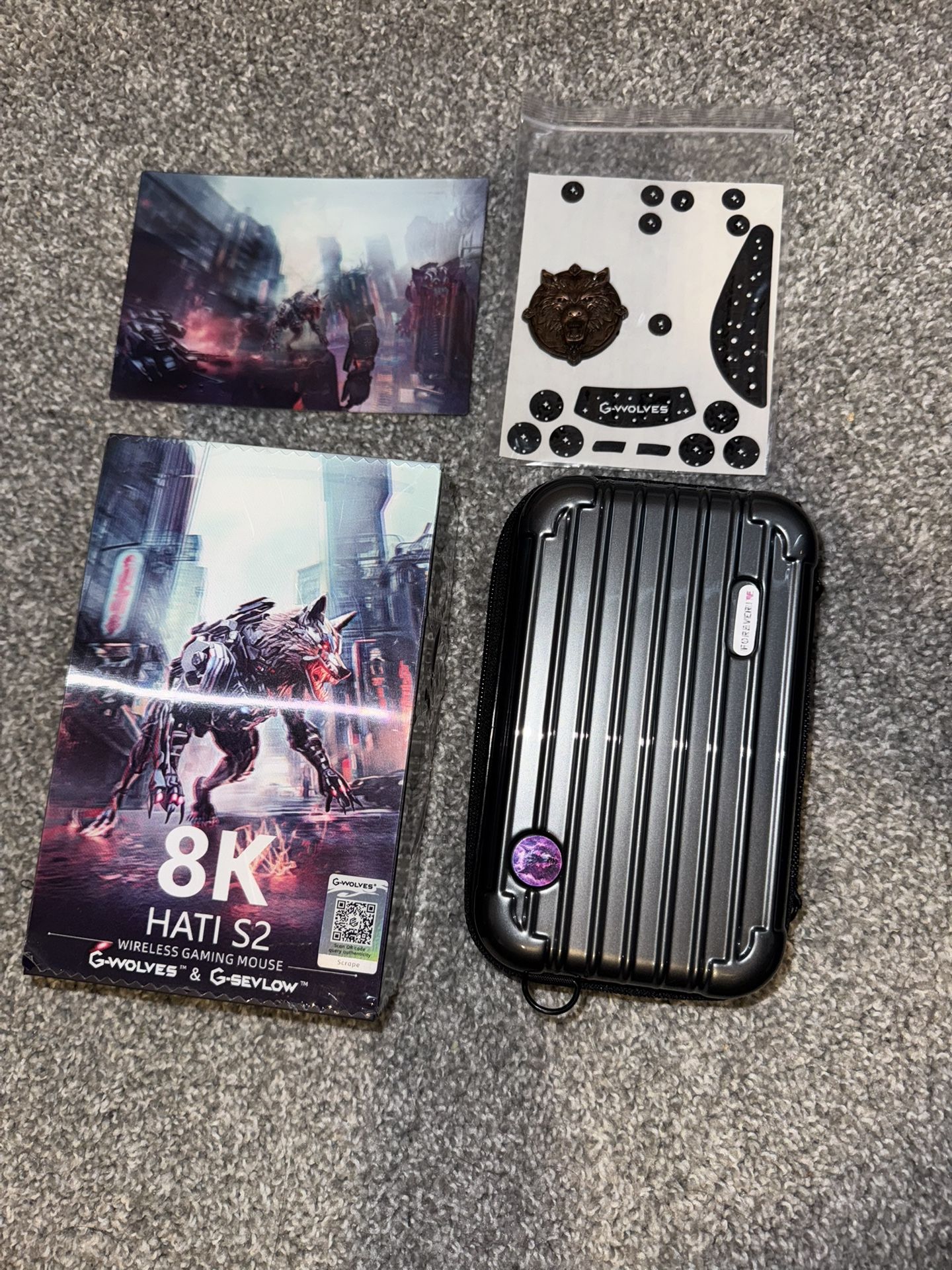 Brand new I used it for 2 days I collect gaming mice and I dont use this one so I don’t want ti have it collect dust. In the box comes - Mouse - Protective Box - 8k Receiver - Charger - Mouse Skates - Gwolves exclusive collectibles