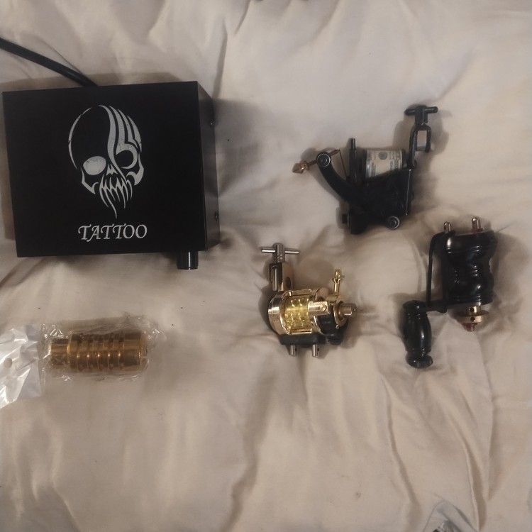 This was in the bottom of a box of stuff that was given to me.. didn't know much other then there are 3 seem to look new tattoo guns and a power source for them worth cord included.. make an offer or a trade?? Asking 80$ obo. Need sold asap