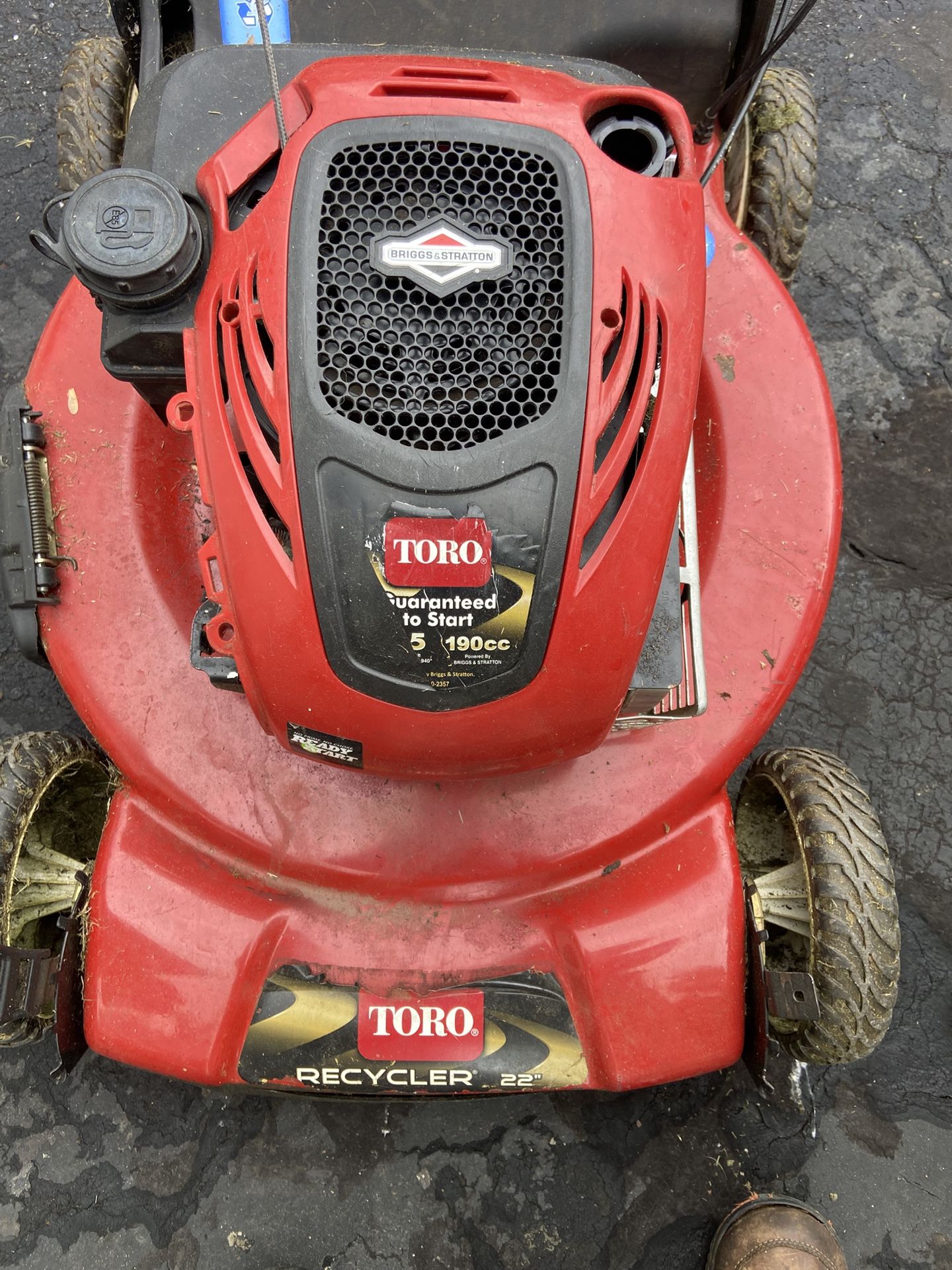 Toro Self Propelled Rear Wheel Drive Lawn Mower with Rear Bagger. New oil, new spark plug, new air filter, new carburetor, new choke and governor springs. Starts up runs strong. $150 Located in Newington!