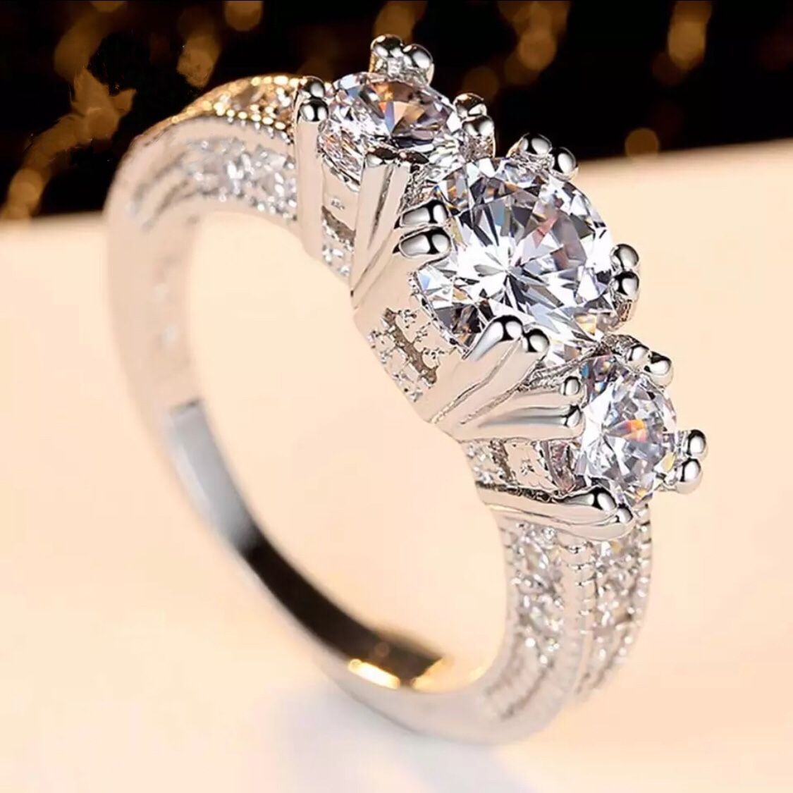 Clear 3 Stones Zircon Women Ring White Gold Filled Wedding Party Engagement Rings