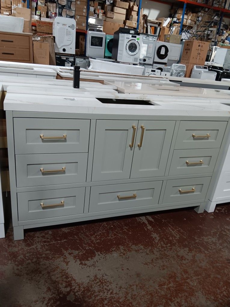 60in Hardwood Bathroom Vanity With Quartz Top And Sink Included