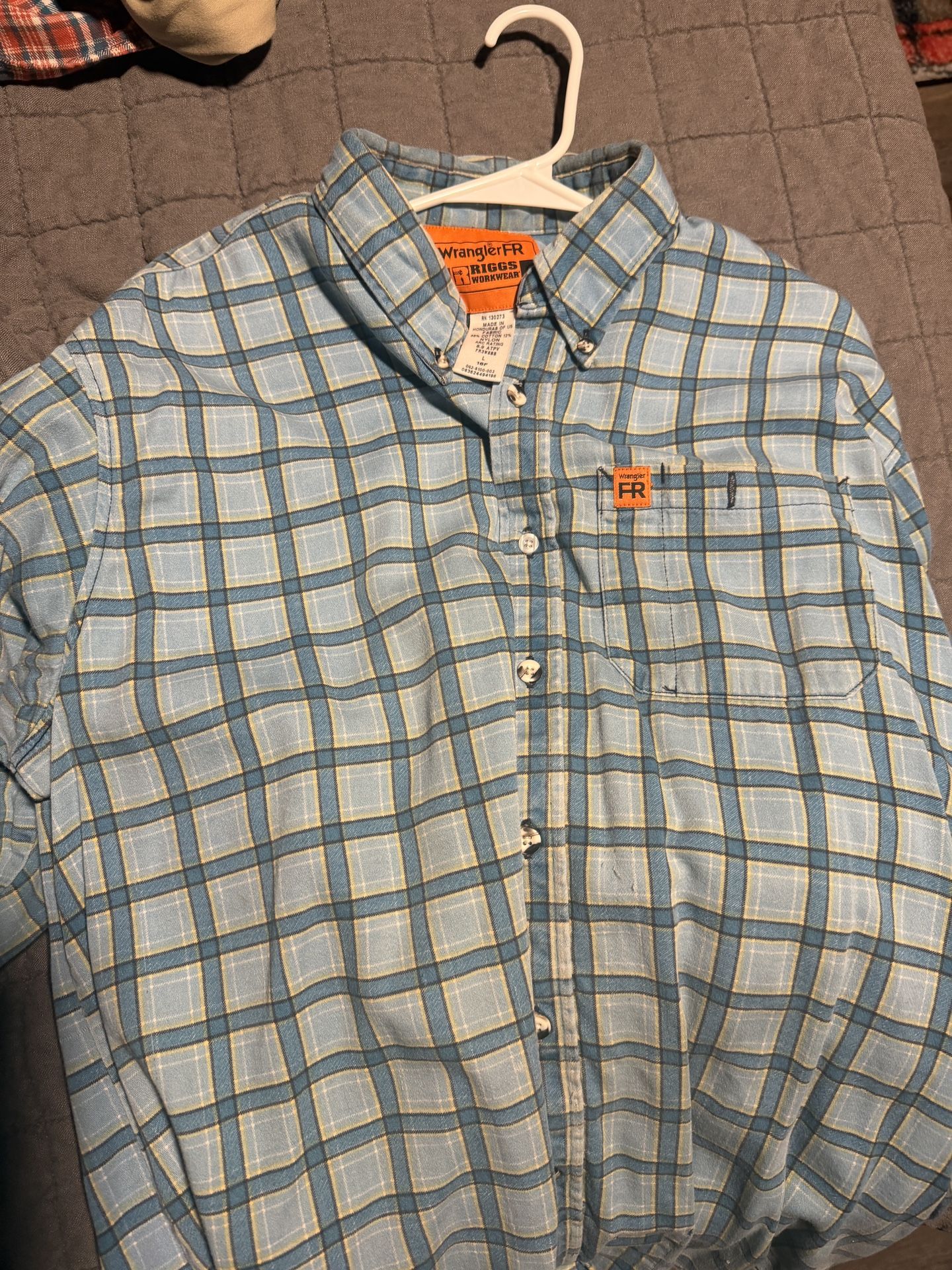 All clothes are used Red Ariat Size Large $20 Khaki Ariat Size Large $20 Baby Blue Wrangler Size Large $20 Rosco Size Medium $20 Worklite Size Medium $15