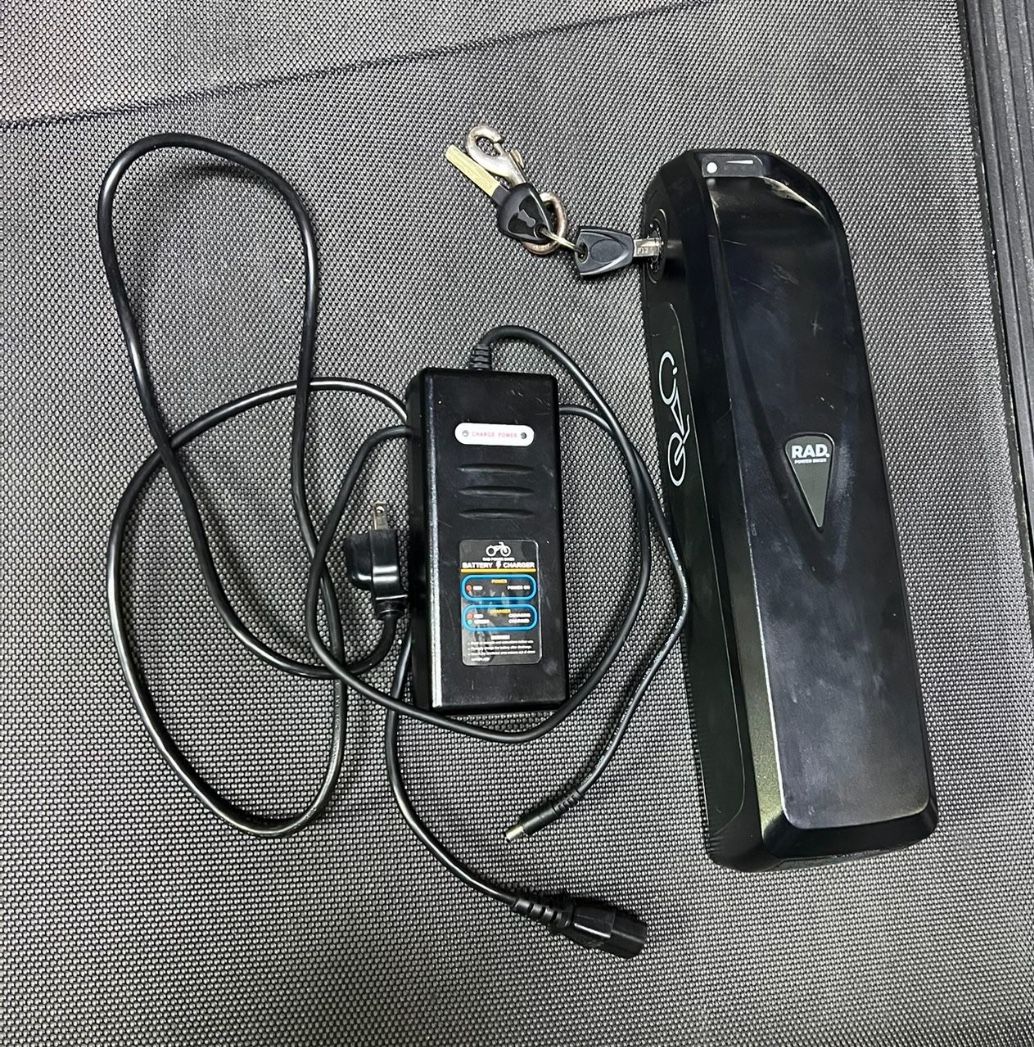 Compatible with Rad Runner, Rad Runner Plus, and Rad City Battery, Charger, and 2Keys In great condition! Like New At Rad store retail is $599+tax 48 Volt 14 amp 25 to 50 miles depending on pedal assist or just all throttle Will deliver so you can test on your bike.