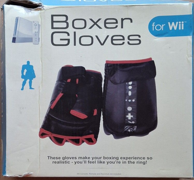 Wii Boxer Gloves One Size Fits All Open Box Black Color Lightweight Adjustable Velcro Strap Never Used CTA Digital Brand