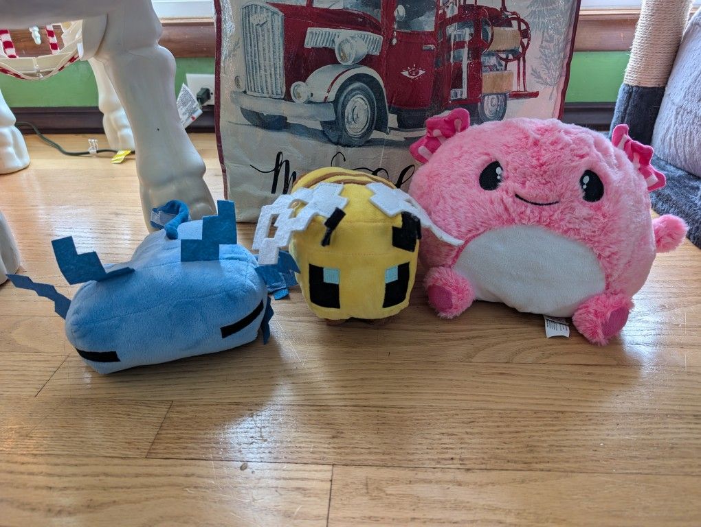 This post is for my daughter she wants to post some of her studies. She has A pink axolotl and a blue Minecraft axolotl also a b from Minecraft. Two cat squishmallows one does have a couple of spots on its back. See pictures for details. She is asking $5 each or all for $20. Porch pickup only in Greendale minutes from South ridge mall. If the post is up the items are still available