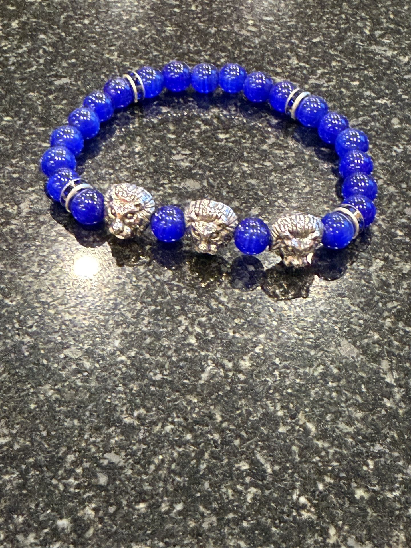 Get ready to dazzle with these 6mm electric blue tiger eye beads, each adorned with a striking 1/2” stainless steel Lion head, all set in a bracelet! One size fits Most