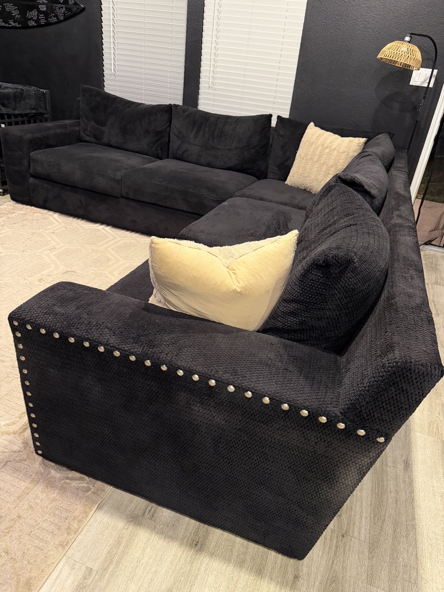 Black Couch Oversized Ottoman included (not in picture) Pillows included (not in picture)