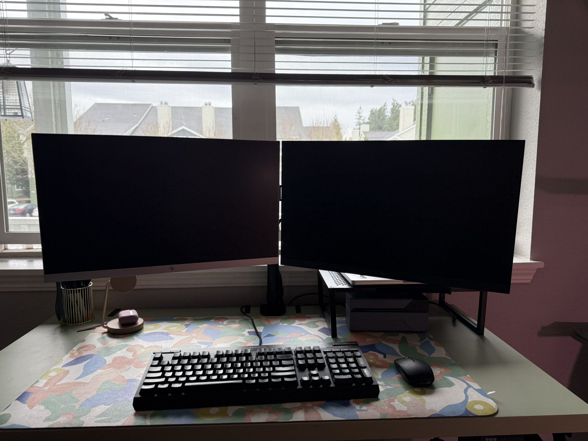 (2) HP EliteDisplay E233 23-inch Monitors. Also comes with desktop dual monitor arm clamp and the original monitor stands. I received these monitors new about 2 years ago, everything is in excellent condition. Asking $150 for this $300 value! Located in Tanasbourne. Manufacturer description: Display size 23" Aspect ratio 16:9 Native resolution FHD (1920 x 1080) Resolutions supported 1920 x 1080; 1680 x 1050; 1600 x 900; 1440 x 900; 1280 x 1024; 1280 x 800; 1280 x 720; 1024 x 768; 800 x 600; 720 x 400; 640 x 480 Pixel pitch 0.265 mm Brightness 250 nits [1] Contrast ratio 1000:1 static; (contact info removed):1 dynamic [1] View angle 178° horizontal; 178° vertical Onscreen controls Brightness; Color Control; Contrast; Exit; Image Control; Information; Input Control; Language; Management; Menu; Minus ("-"); OK; Plus ("+"); Power Control Display features Anti-glare; In plane switching; Language selection; LED Backlights; On-screen controls; Pivot rotation; Plug and Play; User programmable; Anti-static Physical security Security lock-ready (lock is sold separately) Ports 3 USB 3.0 (one upstream, two downstream) [1] Dimensions (W x D x H) 20.51 x 1.76 x 12.27 in Dimension note (imperial) Without stand Product dimensions with stand (W x D x H) 20.51 x 8.58 x 18.02 in Weight 12.79 lb Weight note (imperial) With stand Power Input voltage: 100 to 240 VAC Power consumption 36 W (maximum), 19 W (typical), 0.5 W (standby) Operating temperature range 5 to 35°C 41 to 95°F Operating humidity range 25 to 85% RH Energy efficiency ENERGY STAR® certified; EPEAT® 2019 registered Sustainable impact specifications Arsenic-free display glass; Mercury-free display backlights; Low halogen Certifications and compliances BSMI; CB; CCC; CE; CEL; cTUVus; ErP; FCC; ICES; ISC; ISO 9241-307; Mexico CoC; MSIP; RCM; S-mark; SmartWay Transport Partnership - NA only; TUV-GS; VCCI; WEEE; KC; KCC; PSB; EAC; Vietnam MEPS; Australian-New Zealand MEPS What's in the box AC power cord; DisplayPort™ 1.2 cable; HDMI cable; VGA cable; Monitor Tech spec footnote [1] All specifications represent the typical specifications provided by HP's component manufacturers, actual performance may vary either higher or lower. Tech spec footnote [2] External power supplies, power cords, cables and peripherals are not Low Halogen. Service parts obtained after purchase may not be Low Halogen.