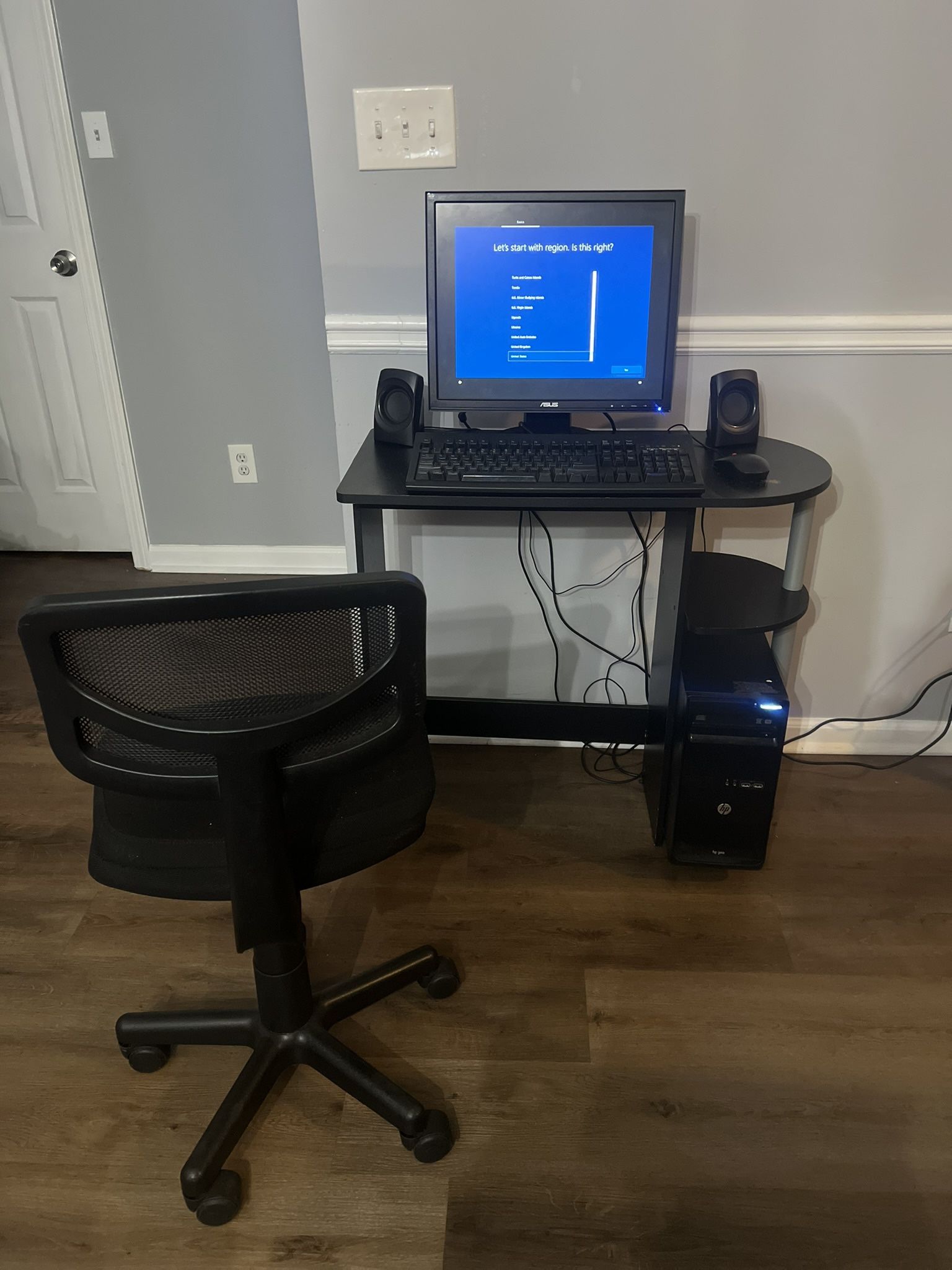 I’m selling a used but fully functional computer monitor, CPU, keyboard, mouse and speakers for $100. The actual desk and chair can be sold together with the computer set as well for an additional $50. The monitor is a 19in Asus and the CPU is an HP. Everything has been reset to factor setting and all cables will be included for easy set up.