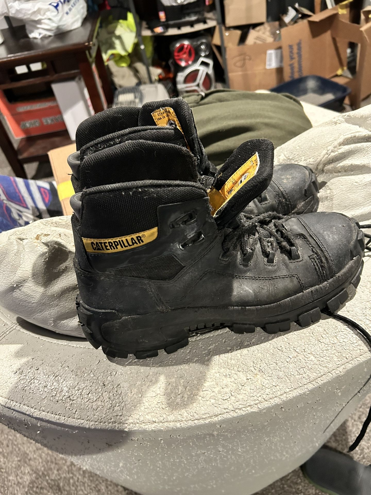 These work boots are pretty new and in great condition, they are a bit dirty, but they are for work. Soles are terrific and they are pretty comfortable as well. Steel toe. Size 10