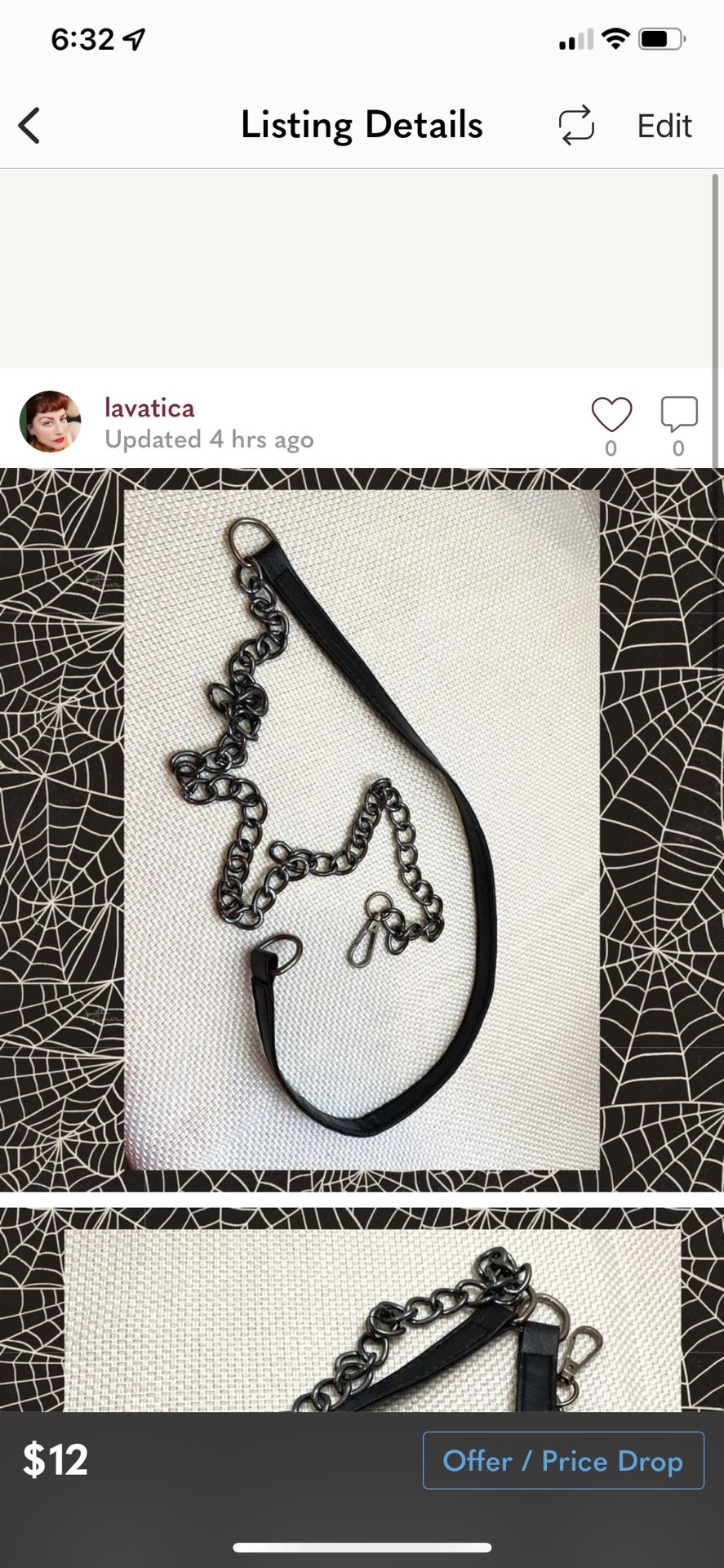NWOT Purse strap gunmetal lightweight chain and faux leather. Clamp on one side to attach to ring on other side. #faux #vegan #chain #gothic #punk