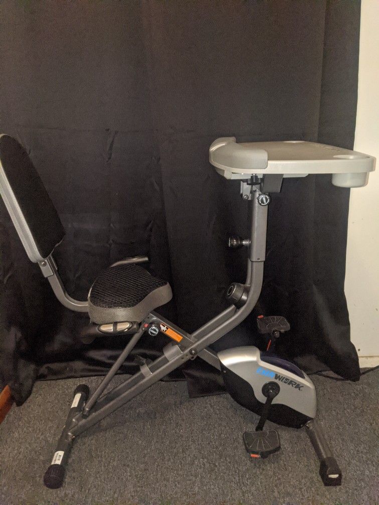 8 Magnetic resistance levels 2 cup holders Drawer Comfortable seat Adjustable height, seat, desk Rollers to easily move bike Lift up to easily fold up bike