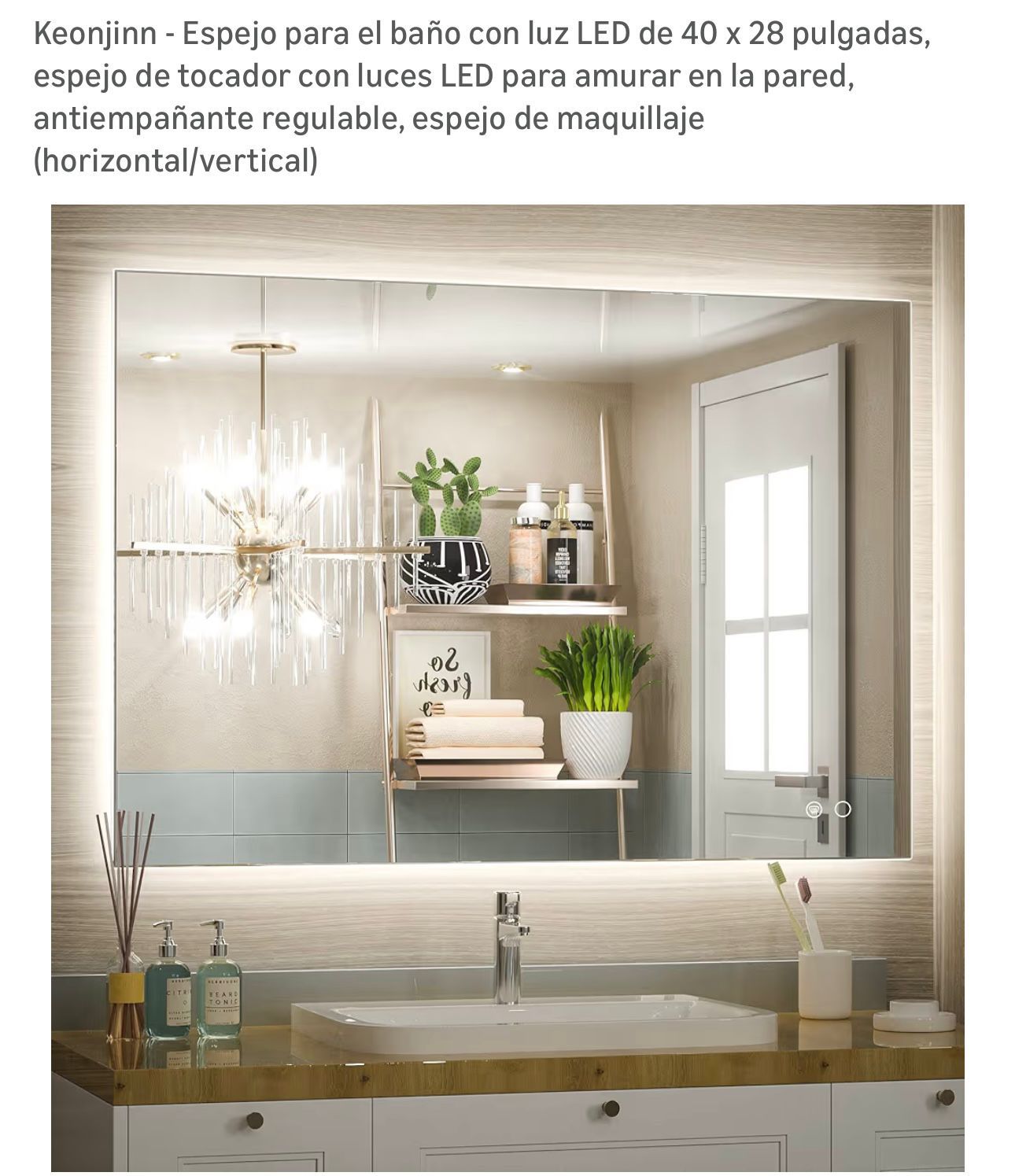 Bathroom mirror with 40 x 28 inch LED light, vanity mirror with LED lights to wall wall, dimmable anti-fog, makeup mirror (horizontal/vertical)