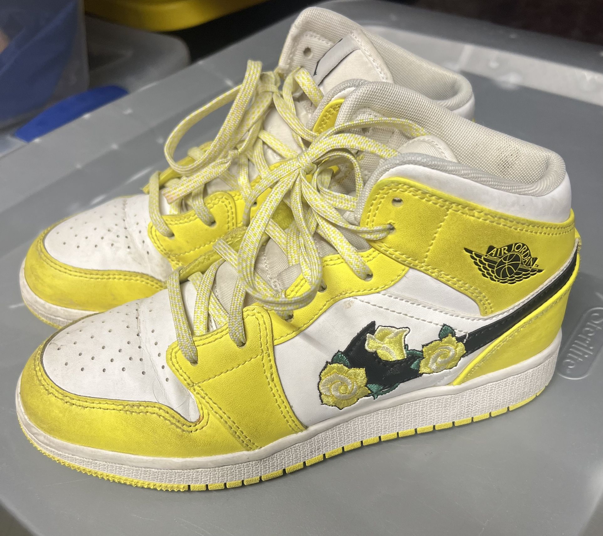 Nike Air Jordan yellow and white floral sneakers , good condition, needs a cleaning.