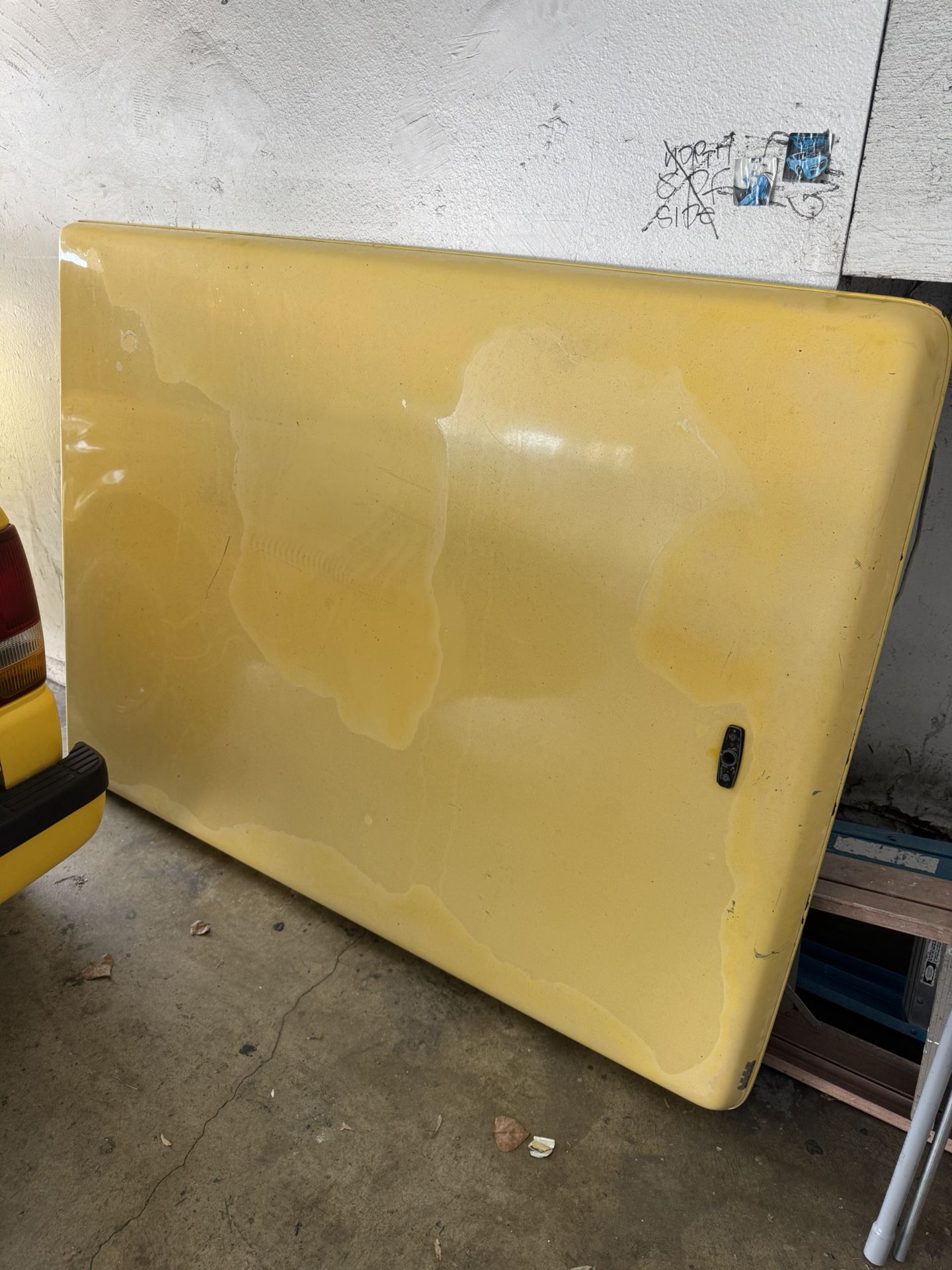 Fiberglass bed cover for step side Shocks gave out , good condition Paint peeling Around 6ft