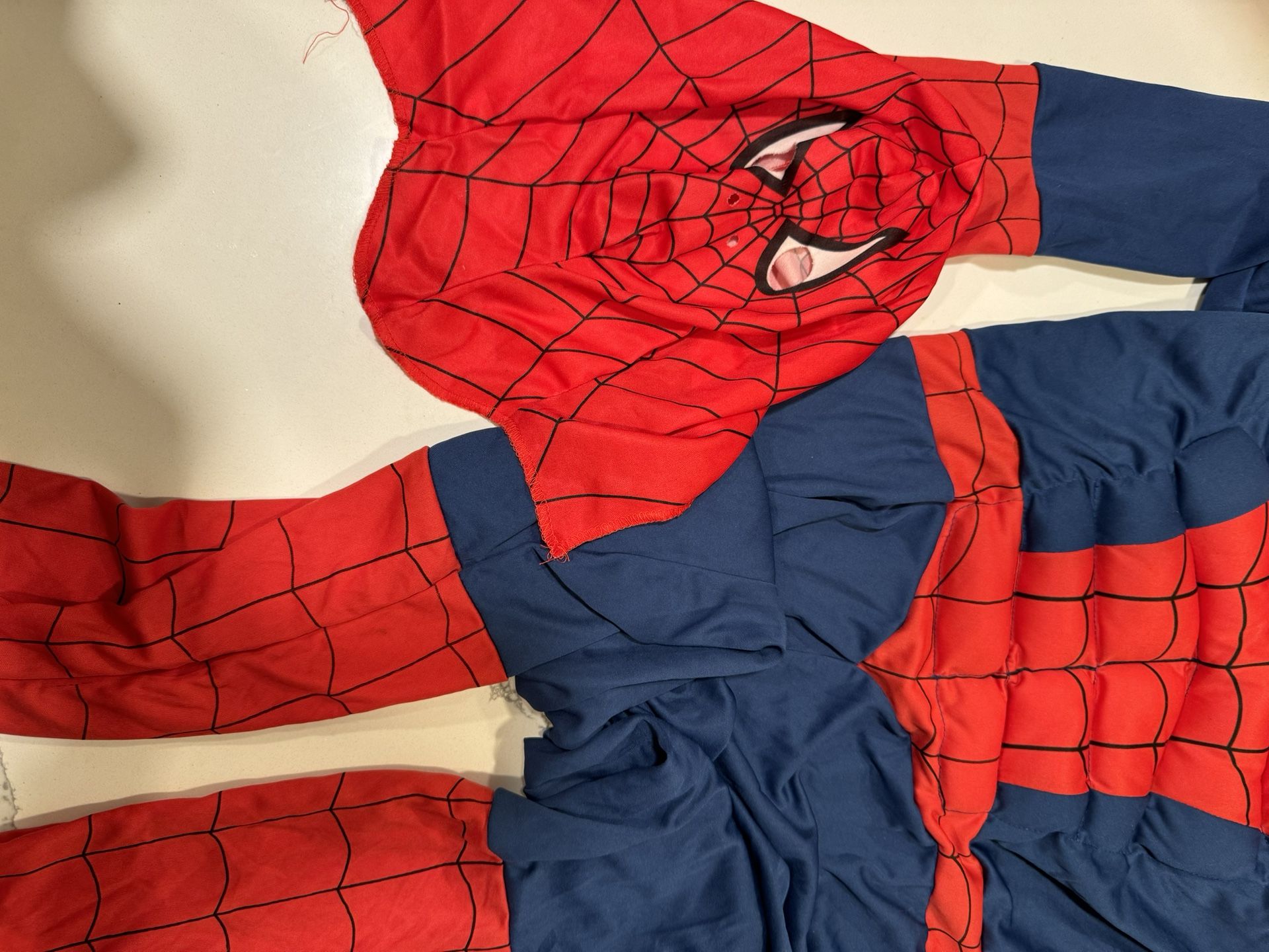 Large for boys 10-12 is stretch comes with mask and muscle body suite