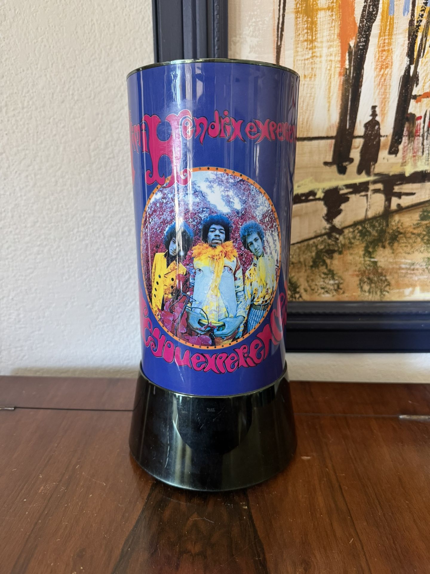 Rare vintage rotating motion lamp featuring iconic Jimi Hendrix artwork from The Experience. Designed by Rabbit Tanaka in 1994, this is a great piece of music memorabilia and a bold statement lamp. ✨ Details: • Approx. 12” tall • Approx. 6” wide • Rotating motion lamp • Original base • Uses 40W candle bulb 🪟 Condition: • Light scratches from age and normal use • Dent on the back (not easily visible, does not affect use) • Works as it should 📍 Cross-posted 💵 Accepts cash, Venmo, PayPal, or Apple Pay 🚫 No deliveries 📦 Can ship Great piece for Hendrix fans, collectors, or anyone into vintage music decor.