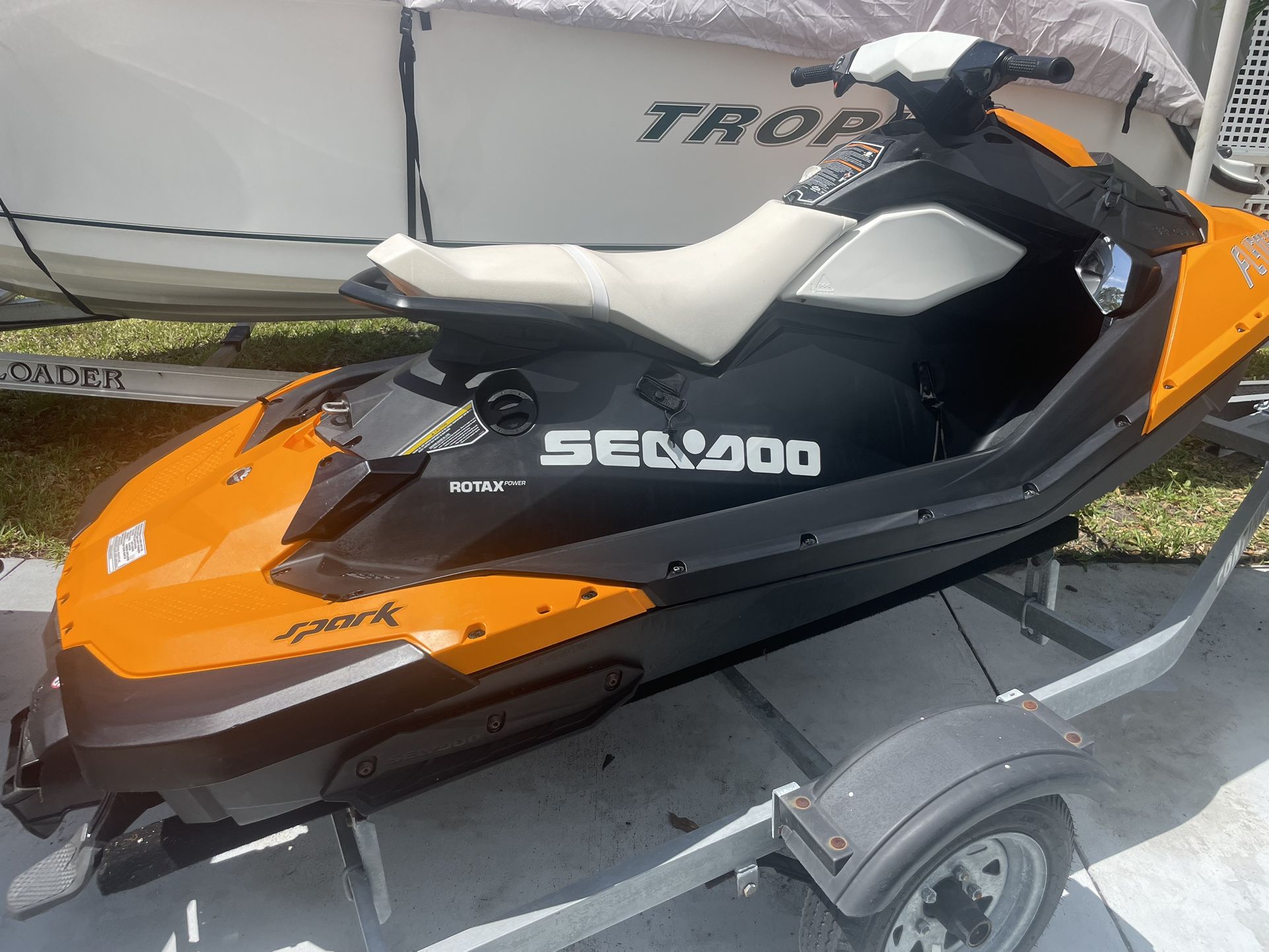 2014 sea doo spark 2up total 900 Only 28 hrs and brand new battery 4/2023 Extras…. Reverse kit $300 Anchor Speed ties 200 Front storage 150 VTS- variable trim system 350 Mirrors for towing Sport mode/touring mode Cover 200 Trailer included.