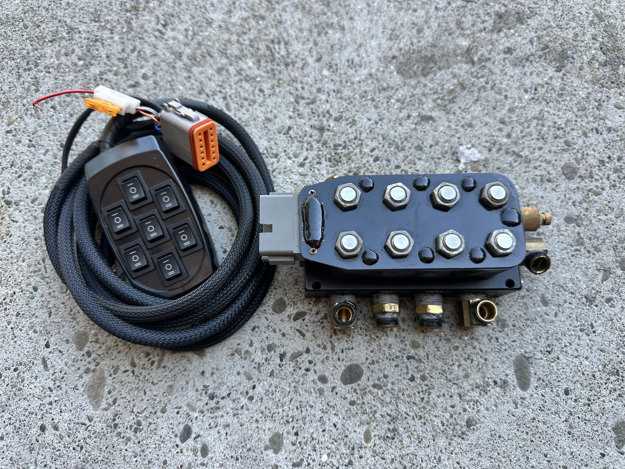 Manifold and switches for air suspension. 3/8" NPT ports. ready for individual control of each airbag. I got an airlift 3P 3H system installed so don't need this anymore.