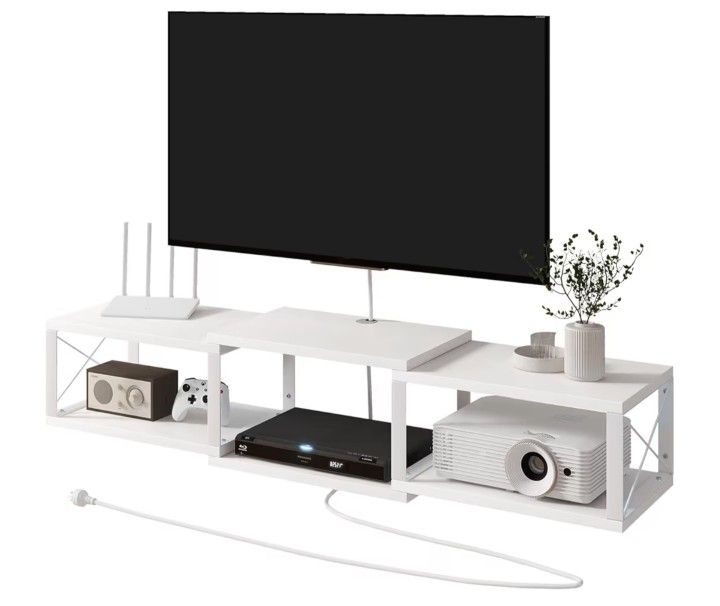 Floating TV Stand with Power Outlet,Wall-Mounted Floating Stand for TVs up to 55",Metal Wall Entertainment Center,Wall Mounted TV Shelf with Storage f