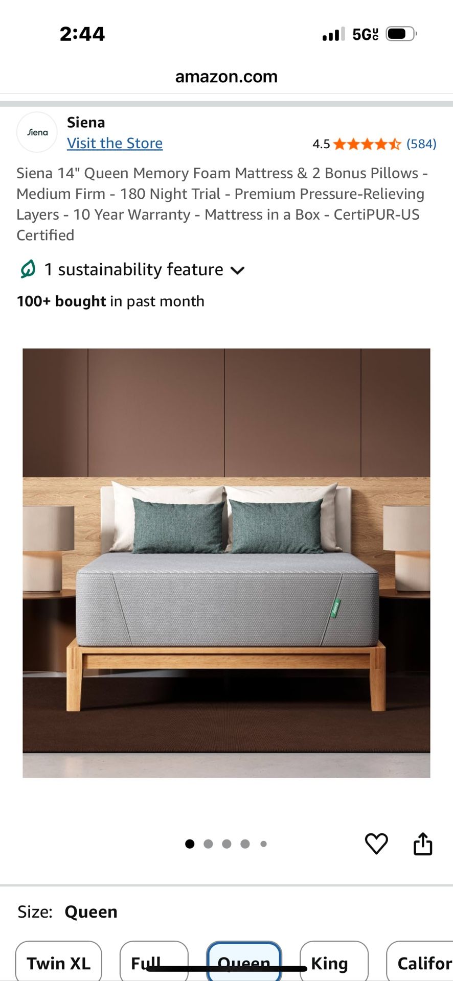 Brand new inbox queen size memory foam mattress with 2 pillows, Sells on Amazon for $515 dollars