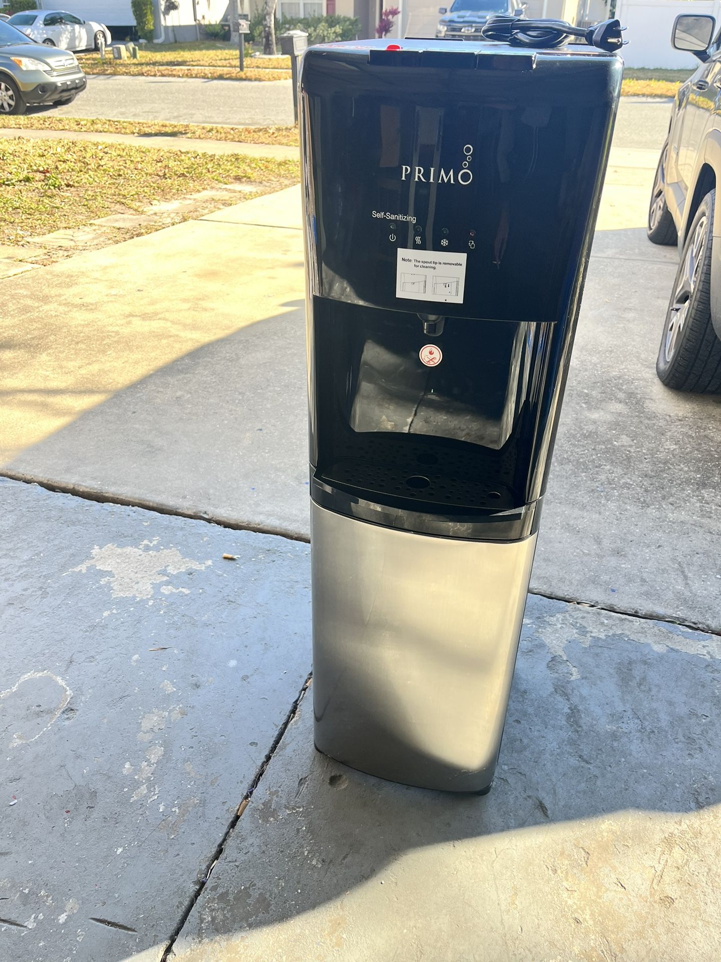 Deluxe bottom-loading water dispenser with self-sanitization. Cold, cool and hot water