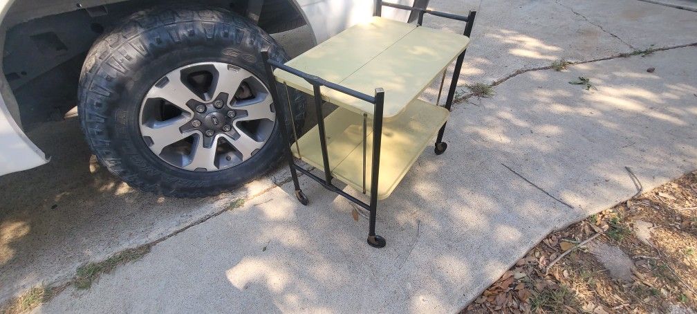 Vtg MCM Fold 'N Roll Versa-Table 2 Tier Shelf Rolling Cart Kitchen Office Made In USA