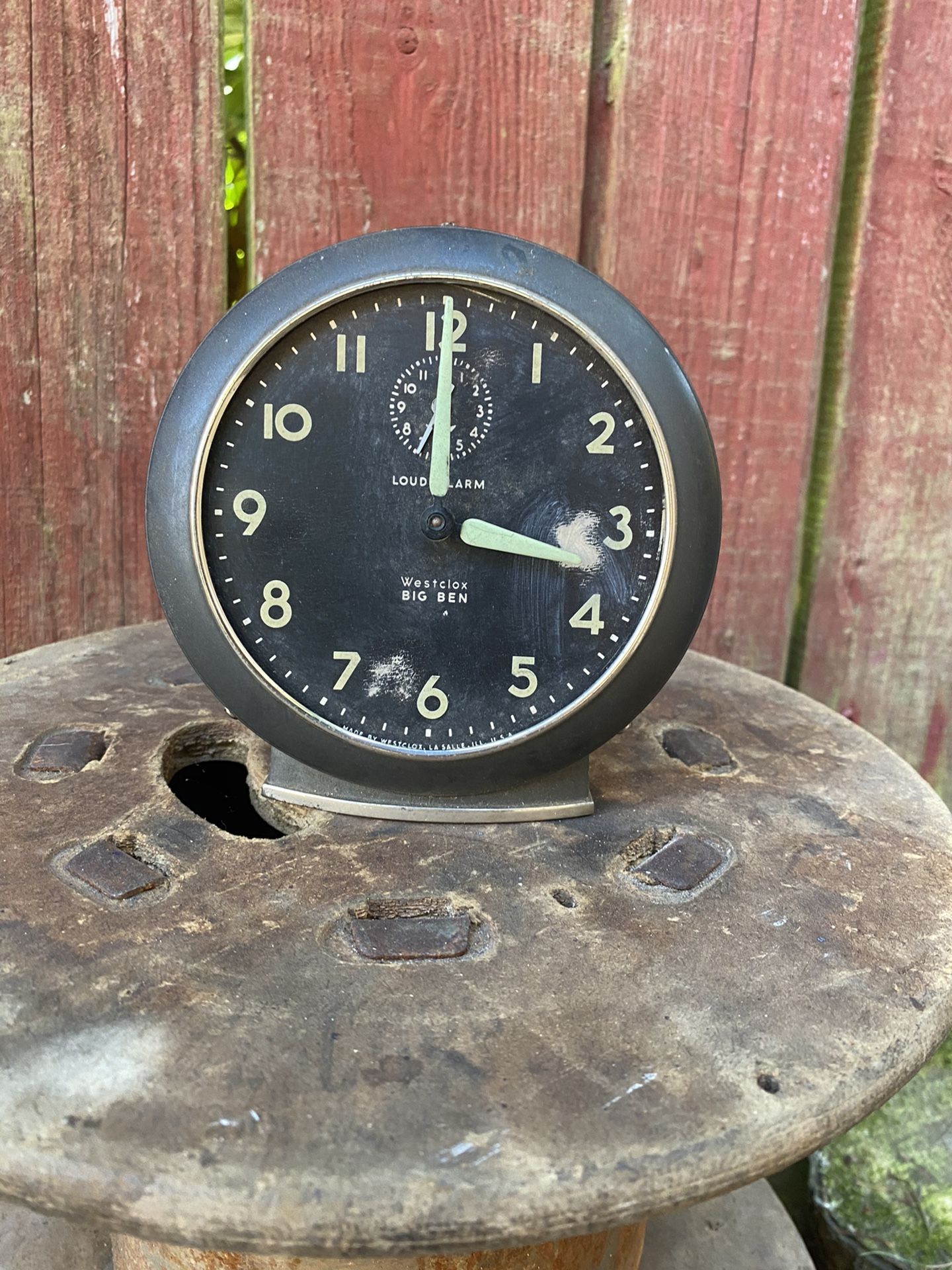 Missing one key to wind the clock up. Great for collection or for vintage decoration.