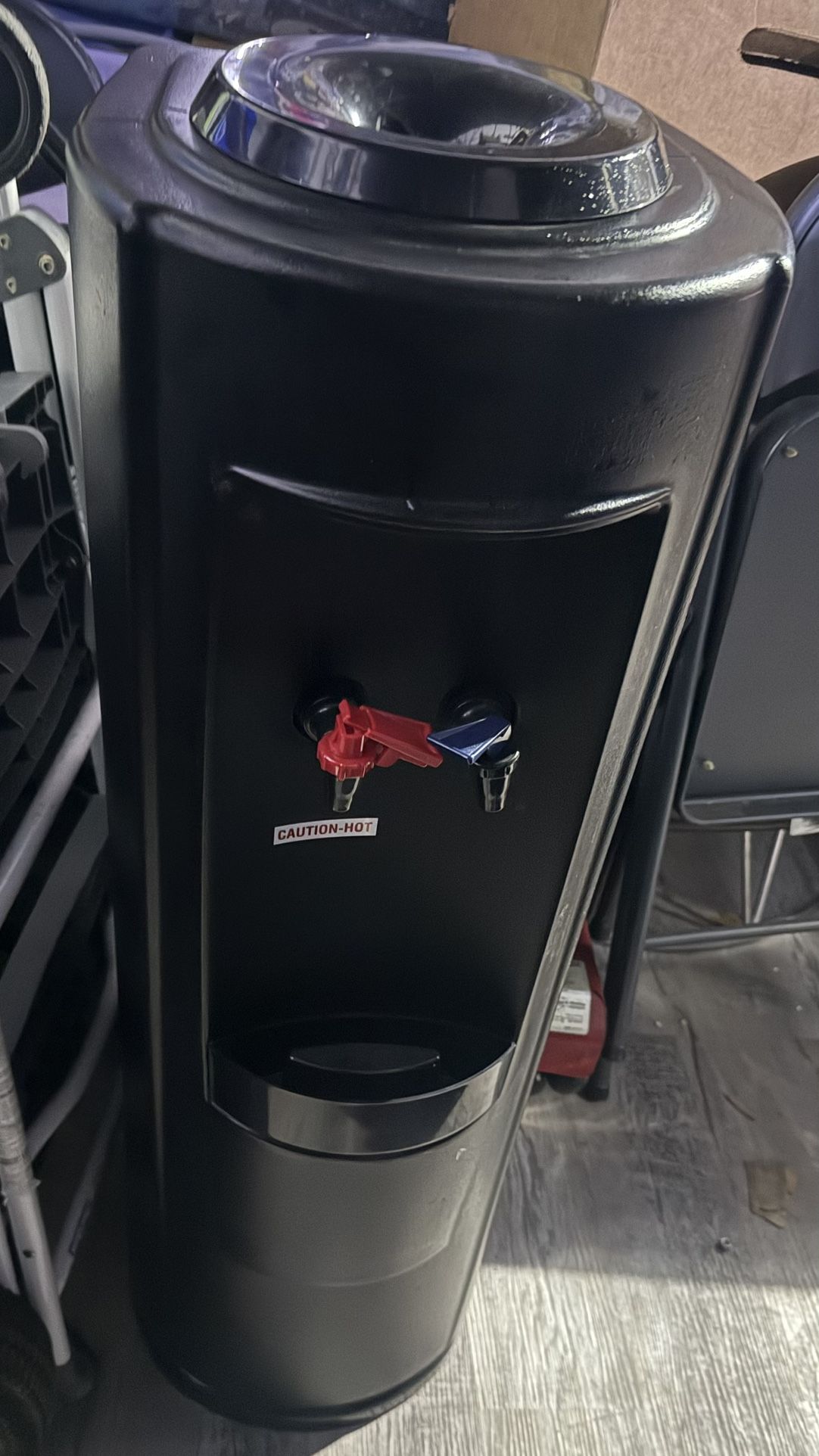 Very Nice Top Loading 5 Gallon Water Dispenser The unit dispenses both hot and cold water. Design: It features a black, freestanding design with a top-loading configuration, allowing you to easily monitor water levels. Safety: The dispenser includes a dedicated red tap for hot water, labeled with a "CAUTION-HOT" sign to prevent accidental burns. Efficiency: Many similar models, such as the Waterways SOSB210ESBR, are ENERGY STAR certified for energy Delivery Is Available For A Small Fee Extra, Stairs Are Extra Cash, CashApp, Venmo, Chime and Apple Pay Is The Accepted Forms Of Payment