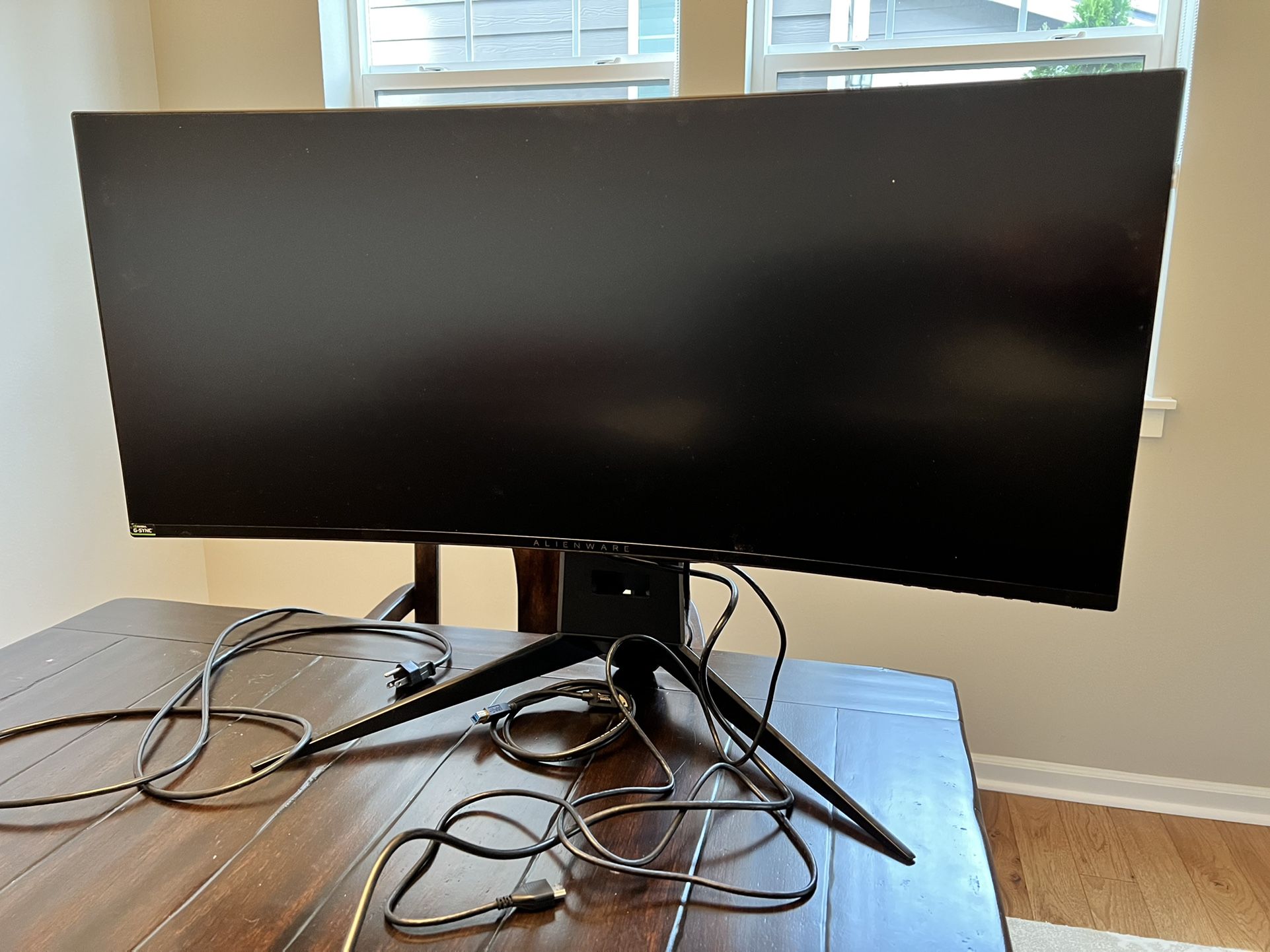 Well kept Dell Alienware AW3418DW 34" (Actual size 34.14") 1900R WQHD 3440 x 1440 120Hz Overclocked NVIDIA G-SYNC HDMI DisplayPort 4xUSB 3.0 IPS LED Backlit Curved Gaming Monitor