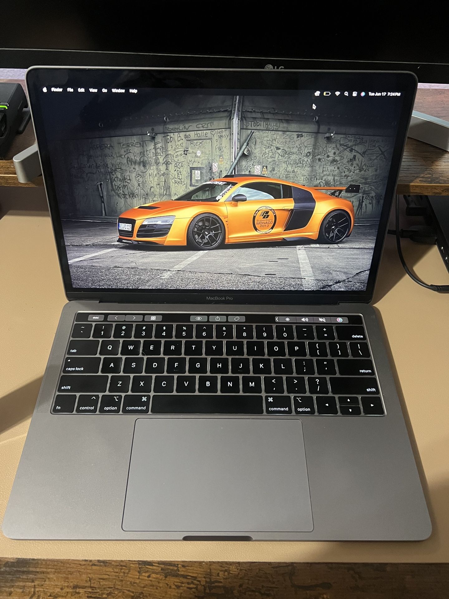 Make an offer! Specs: 2019 MacBook Pro 13” Retina Display Space Grey Touchbar i7 Processor 16 GB Ram 256GB SSD Comes with charger and protective travel case Minor scratch on top and side Don’t use it anymore after switching to windows laptop
