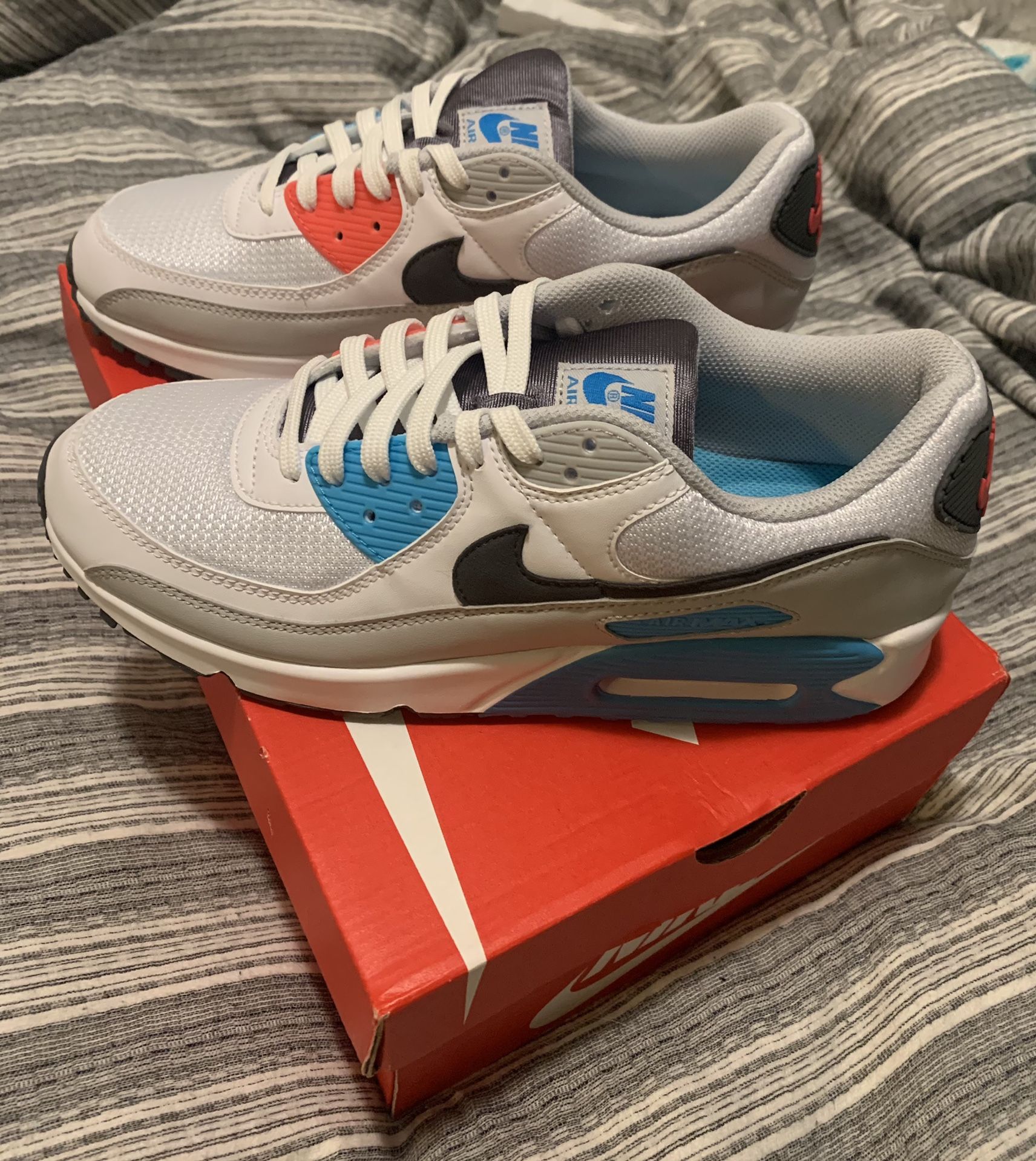 White Iron Gray Chlorine Blue/Pink Nike AirMax 90