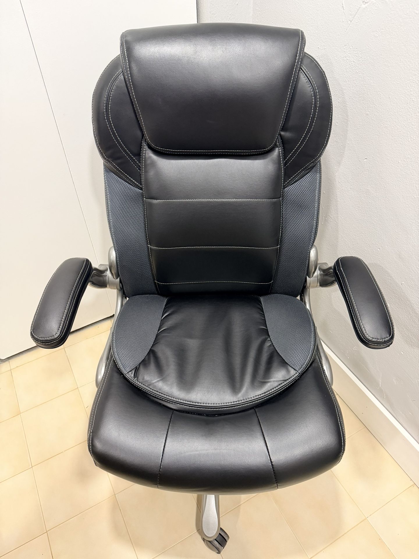 Ergonomic High-Back Office Chair with Flip-Up Arms and Lumbar Support, 29.5"D x 27.5"W x 44.75"H, Black