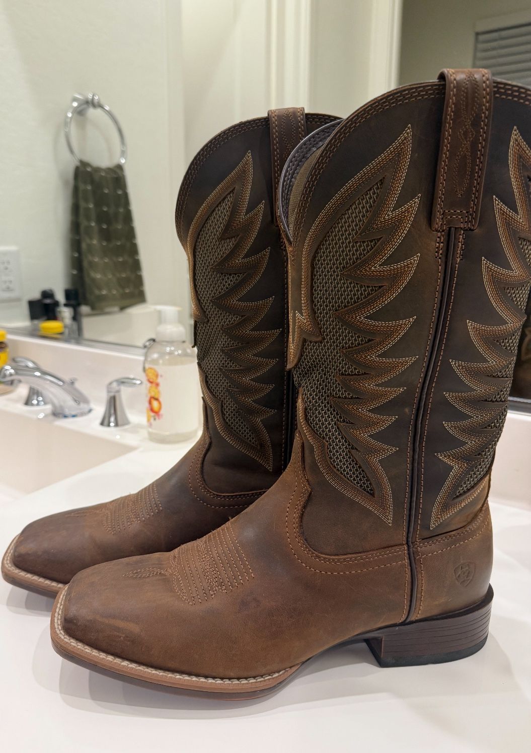 Ariat VentTEK Ultra cowboy boots (Style #10023129). In excellent condition, gently worn. Leather is high quality distressed brown. Size US 11D (Men’s). Originally $240. In Excellent condition