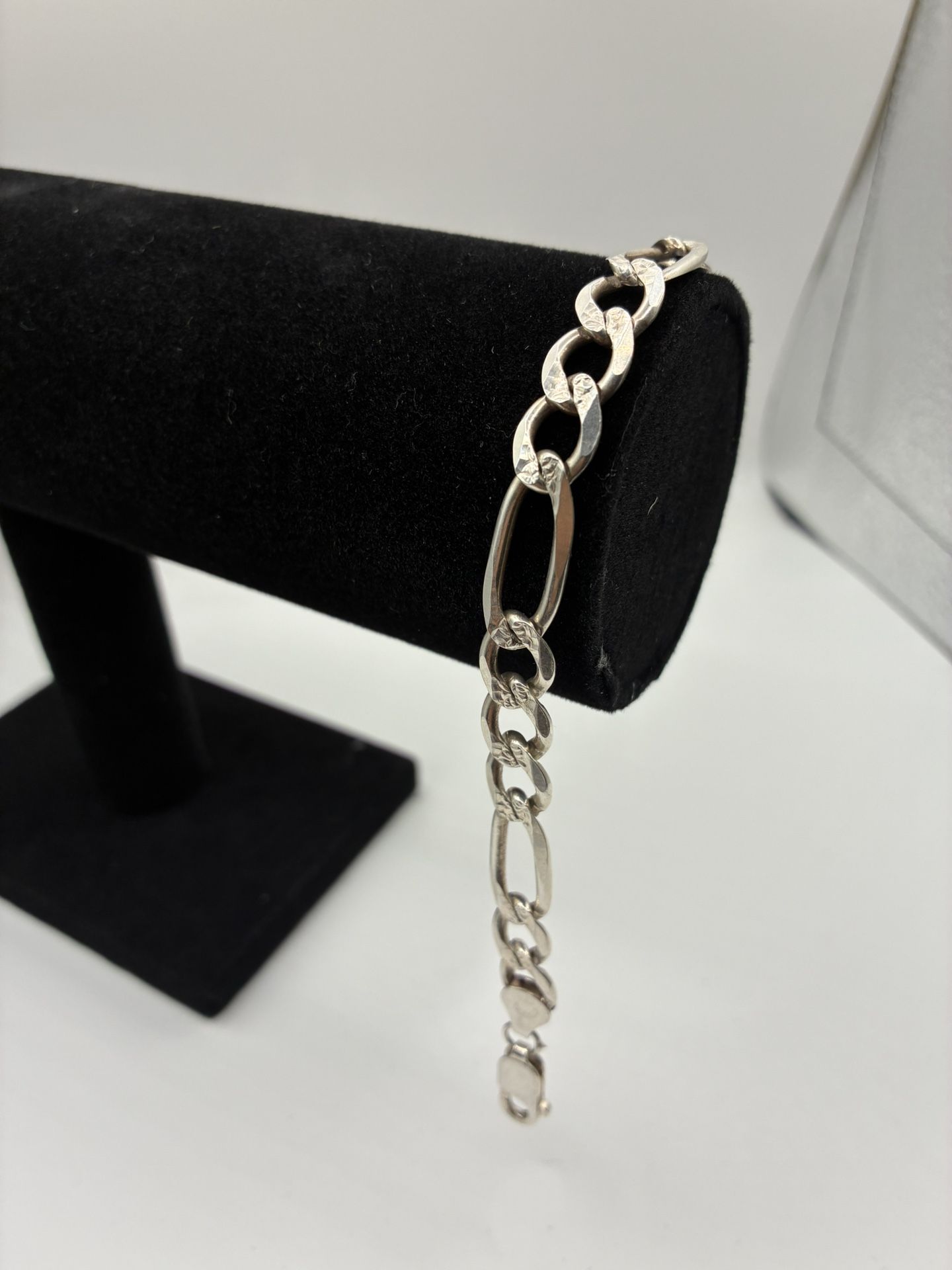 925 sterling silver Figaro link bracelet. Bought in Mexico — known for quality silver craftsmanship. ✅ 925 Sterling Silver ✅ 8 inches ✅ 15 grams — solid and heavy ✅ Thick Figaro link style ✅ Lobster clasp Real silver — not plated, not fake. Has some nice weight to it. Price: $120 🚫 No lowballers 🚫 No trades 🚫 Serious buyers only Message if interested.