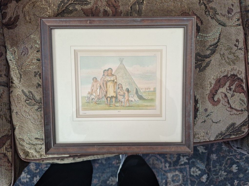 GEORGE CATLIN PLATE 165 ENGRAVING 65.00 obo located in Tanoan communities. Purchased at Alterman art galleries in Santa Fe text me at (contact info removed) George Catlin (/kætlɪn/ KAT-lin;[1] July 26, 1796 – December 23, 1872)[2] was an American lawyer, painter, author, and traveler, who specialized in portraits of Native Americans in the American frontier. Traveling to the American West five times during the 1830s, Catlin wrote about and painted portraits that depicted the life of the Plains Indians. His early work included engravings,